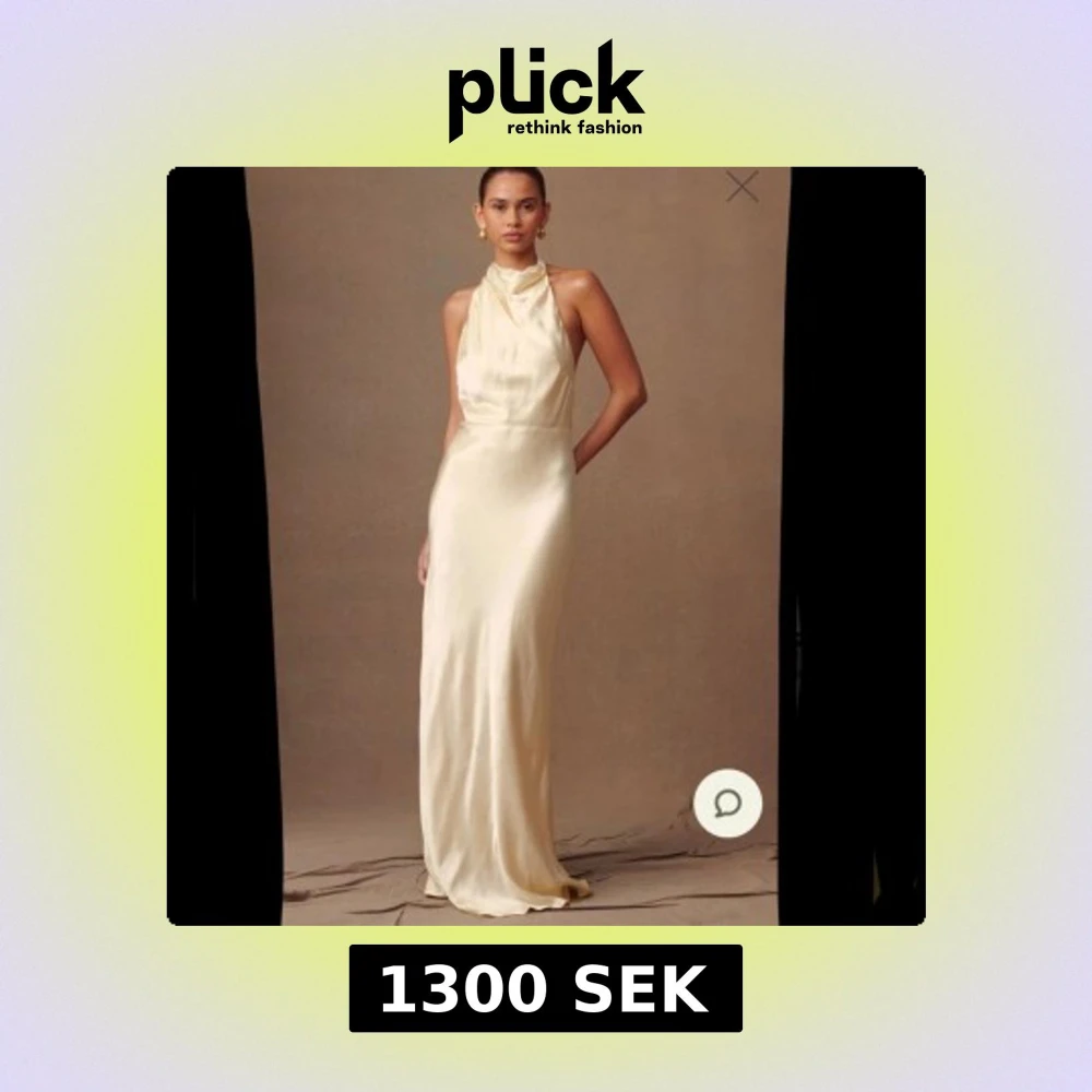 Elegant ljusgul maxiklänning i satin med halterneck och öppen rygg. Klänningen har en smickrande passform och knappar längs ryggen för en stilren look. Passar perfekt till både bal och bröllop☀️klänningen är köpt för 1600 kr och säljer den eftersom den inte passade vad jag sökte. Detta är klänning 2/2 (beställde hem samma klänning i 2 storlekar)