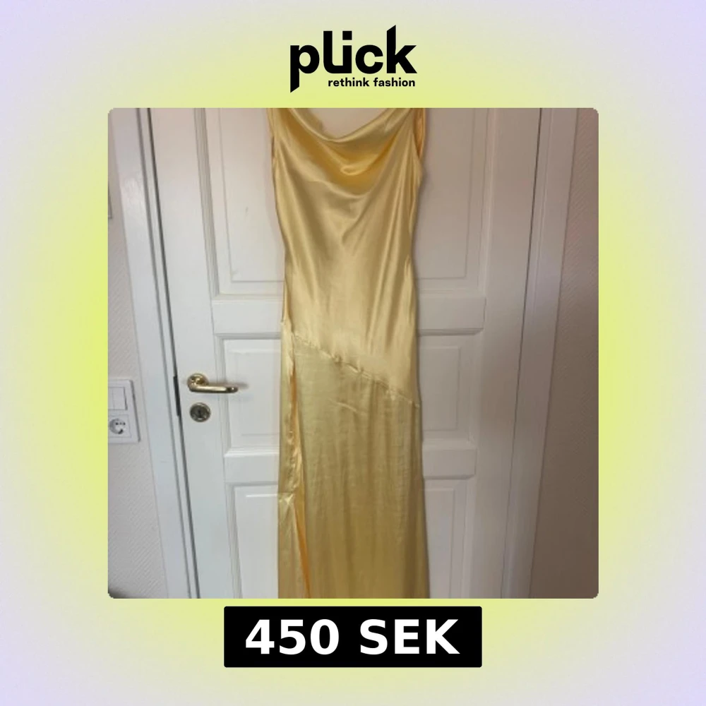 Snygg ljusgul långklänning i satin med draperad urringning och smala axelband som korsas i ryggen. En perfekt klänning som passar till många tillfällen. Jag är 170 och den går ner till fötterna på mig. Är både en 34 och 36. Priset går att diskutera