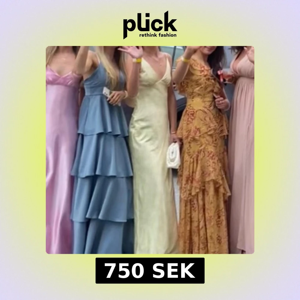 Säljer denna ljusgula långklänningen med diskret blommönster💖Passar jättebra som balklänning! Köptes för 950kr från peppermayo och säljs nu av mig för 750kr. Klänningen är endast använd en gång. Strl 32 men passar mig som brukar ha 34