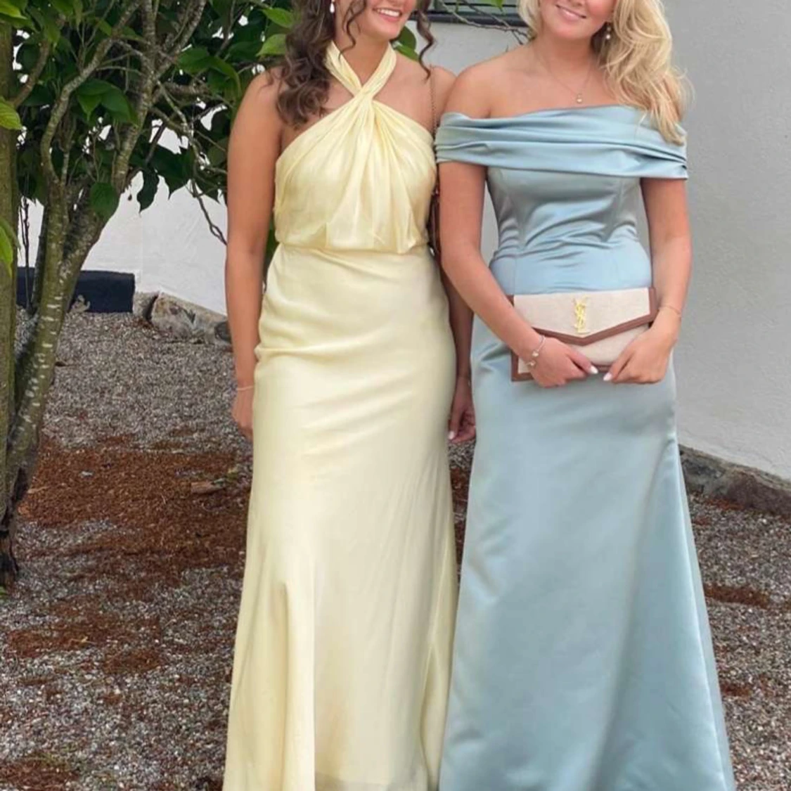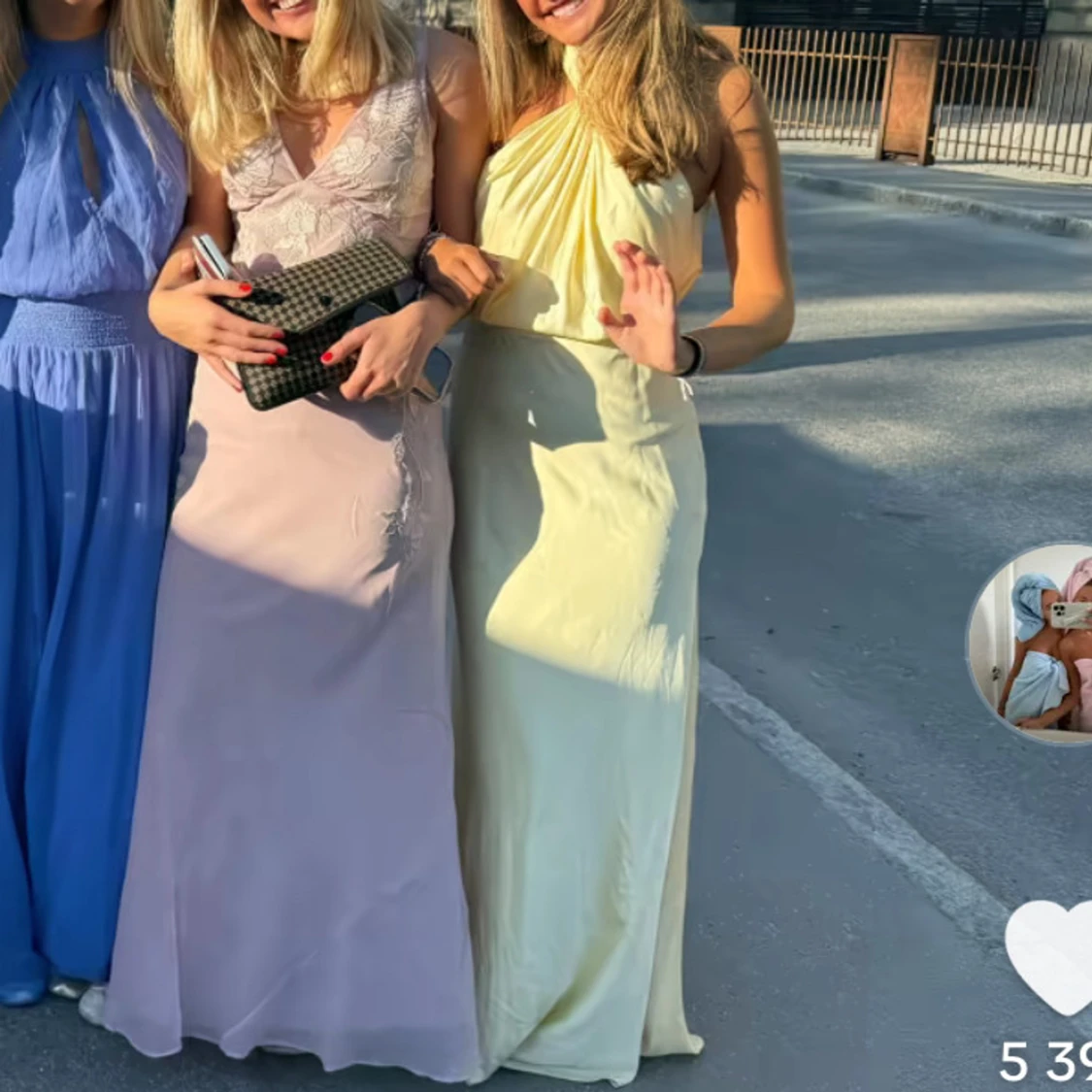 Säljer min fina balklänning, som är en ljusgul silkes klänning och är samma kläning som på första bilden. Det är en storlek 36 och kan skicka fler bilder!💛