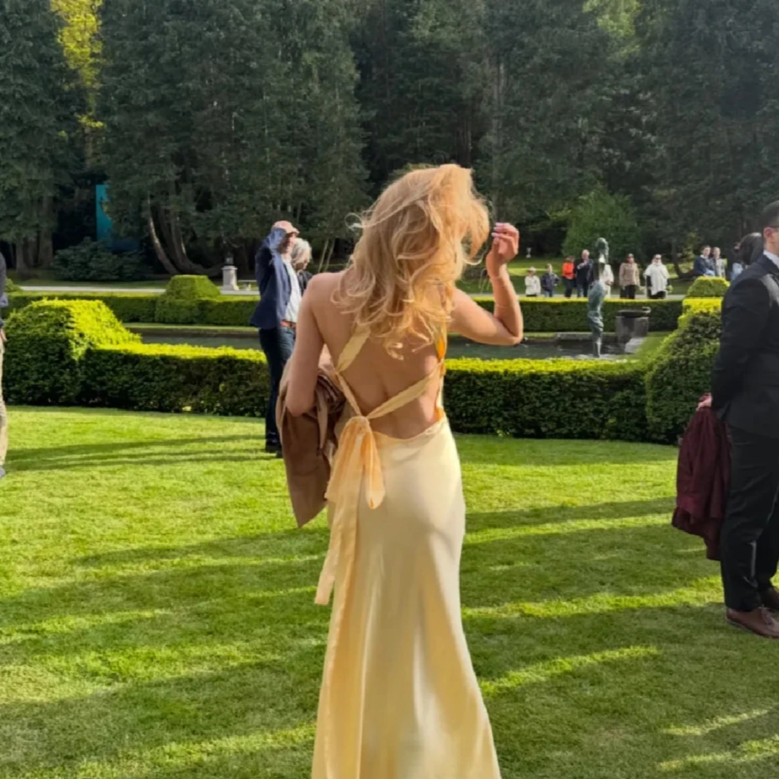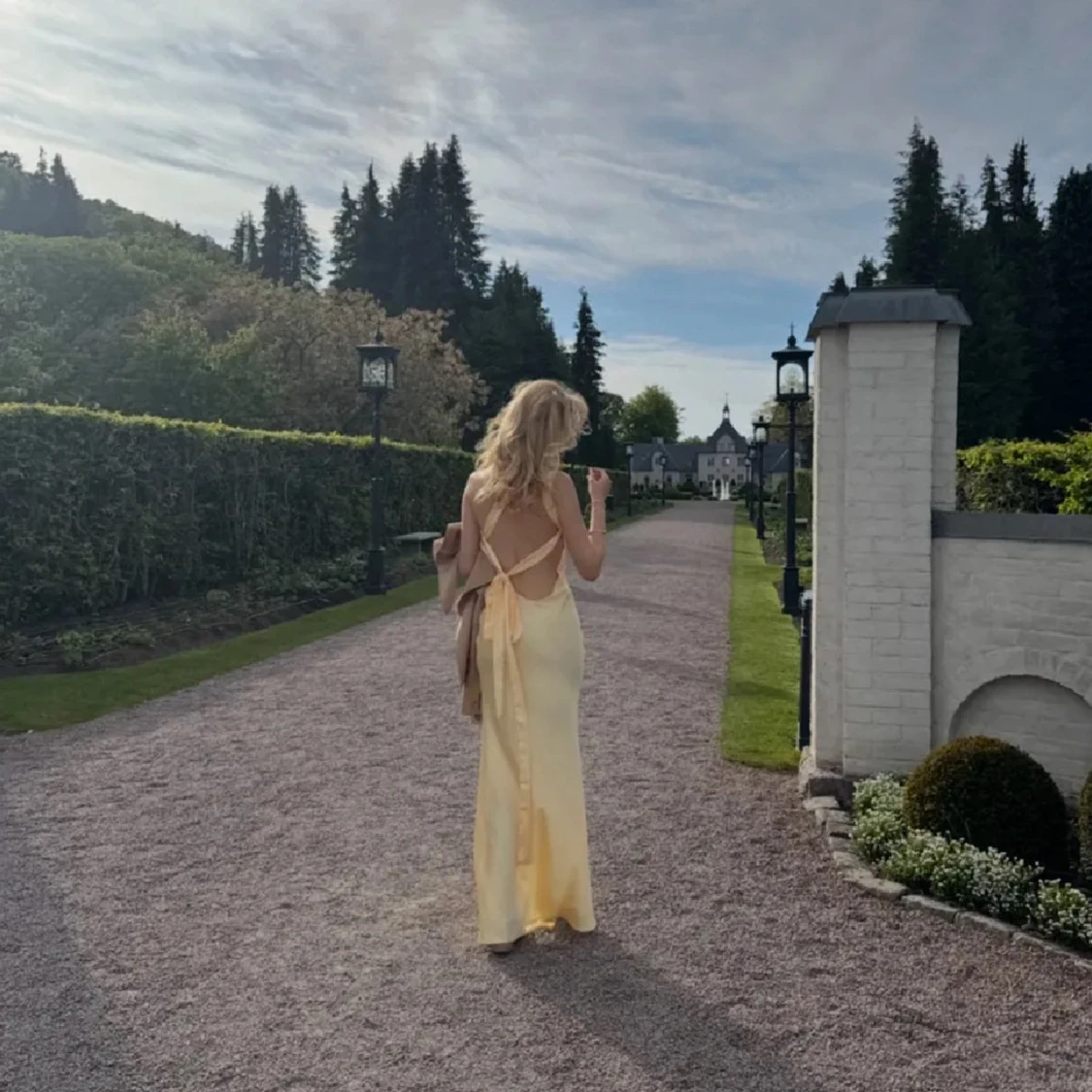 Ljusgul långklänning med knyt i ryggen