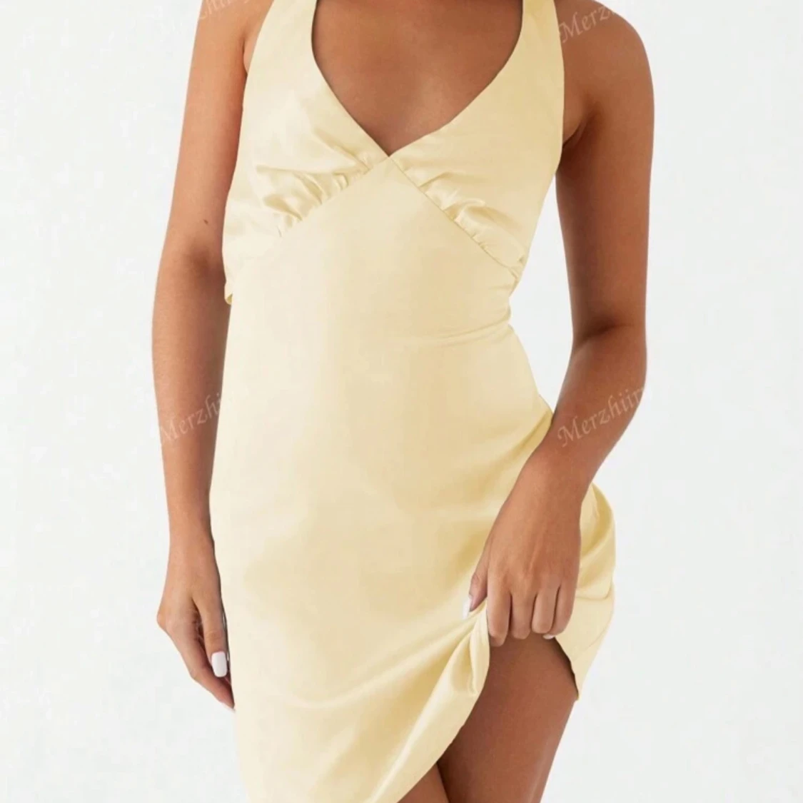 Ljusgul omlottklänning i satin