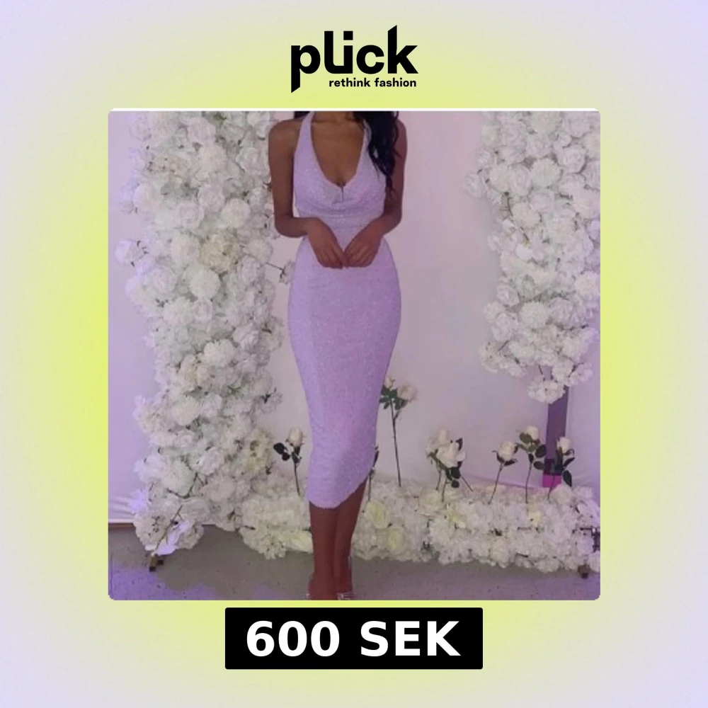 Säljer en ljuslila glittrig långklänning med djup v-ringning och smala axelband. Klänningen har en figurnära passform och en slits på sidan. Perfekt för festliga tillfällen. Materialet är glittrigt och stretchigt. Köpt från Oh Polly och är i helt nytt skick🩷