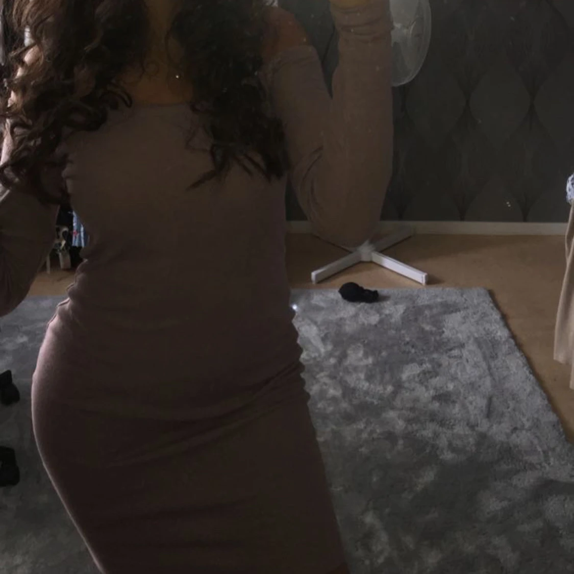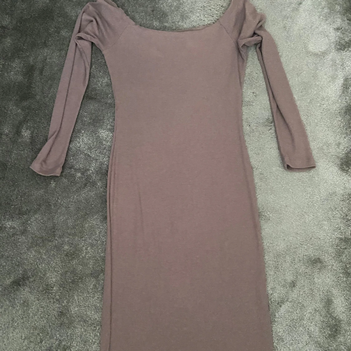 Säljer en superfin ljuslila klänning med lång ärm och offshoulder-skärning. Klänningen är tight och har en smickrande passform som framhäver figuren. Storlek M men passar S