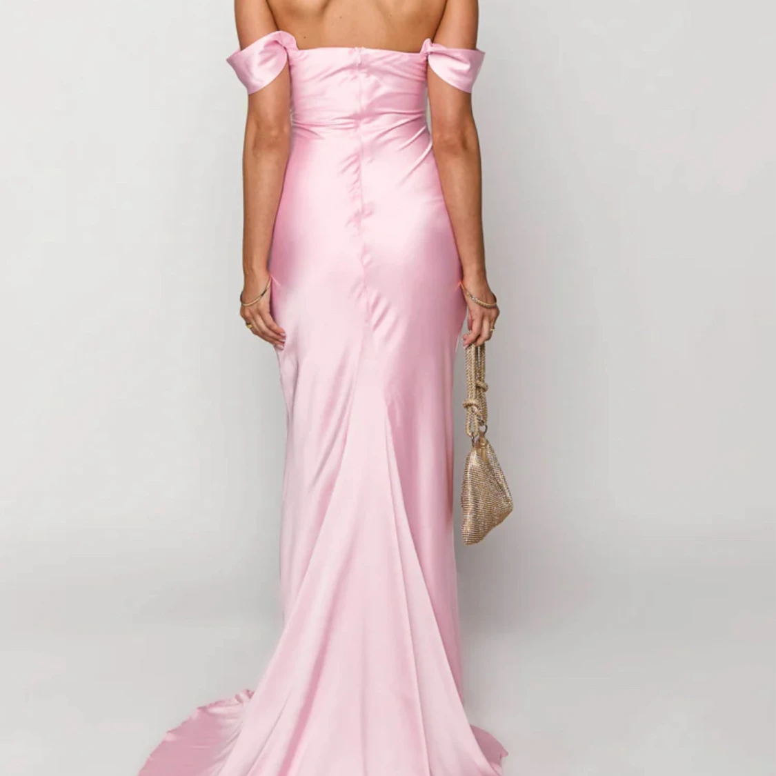 Superfin ljusrosa långklänning i glansigt satinliknande material. Klänningen är axelbandslös med offshoulder-detaljer och har en figurnära passform som faller snyggt längs kroppen. Perfekt för bal eller festligare tillfällen. Den kostar orginellt 745 kr + nedkommer en tullkostnad på 300 kr. Aldrig använd, endast provad!