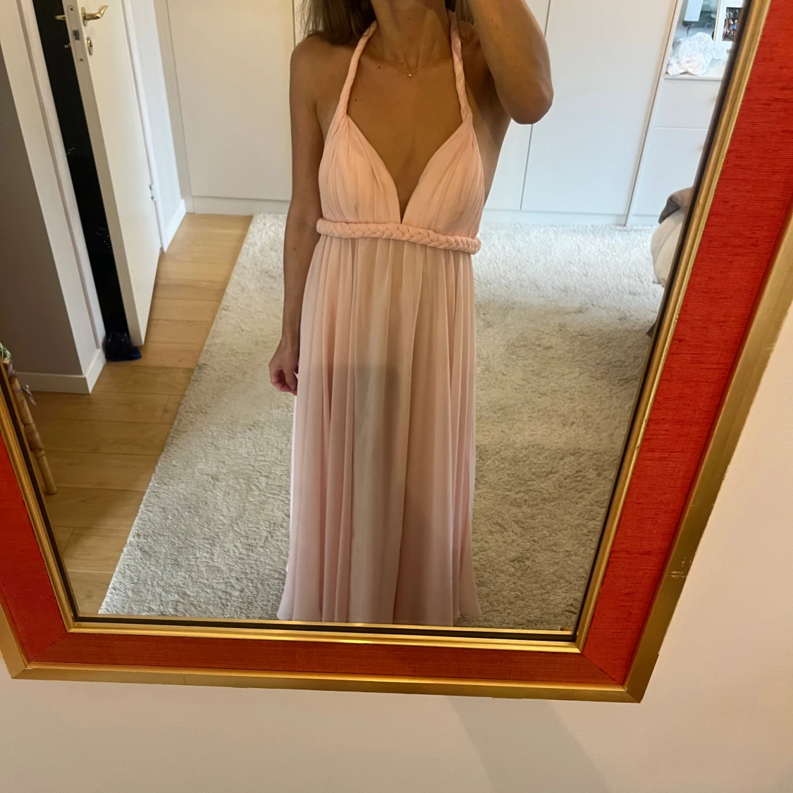 Jättefin balklänning! Är endast använd två gånger och klänningen är person-sydd! Har en jättefin öppen rygg😍