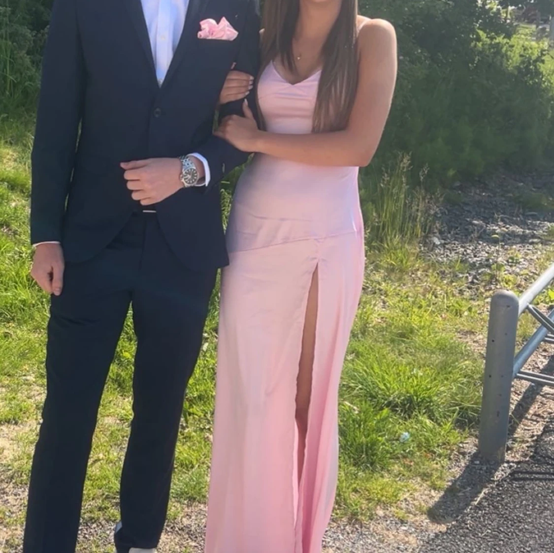 Jag säljer min balklänning, ljusrosa med otrolig slits. Klänning följer kroppen perfekt och man kan justera hur löst och tajt man vill att klänningen ska sitta med hjälp av snörningen baktill, så den passar till många xxs,xs och s med mera. Perfekt till bal,bröllop och festliga sammanhang. Använd en gång och är i perfekt skick, PRIS kan diskuteras!