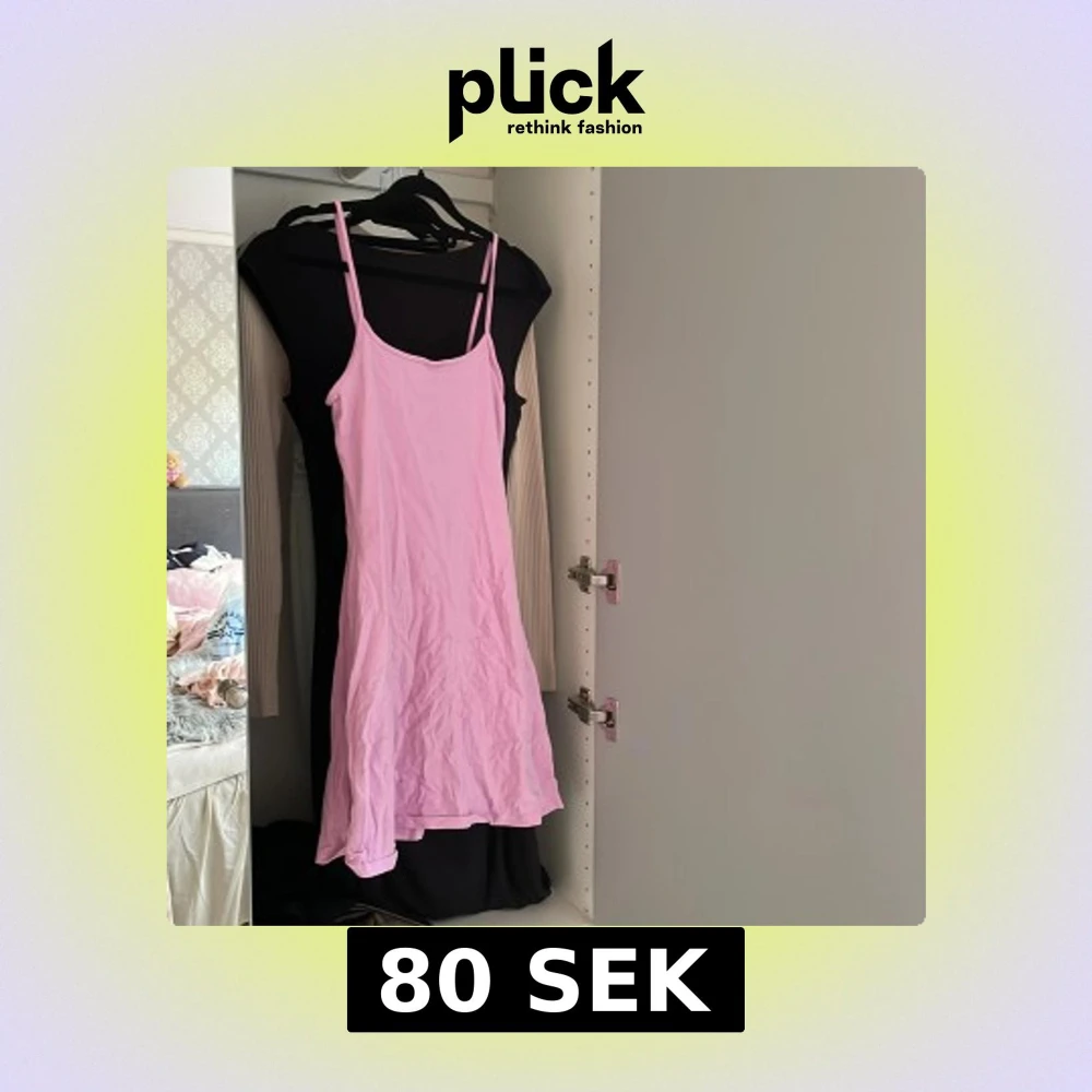 Supersöt ljusrosa klänning med smala axelband och enkel, tajt passform. Klänningen är kort och har en mjuk, lätt känsla som gör den perfekt för varma dagar. Stilren och enkel design utan mönster eller detaljer. 💞