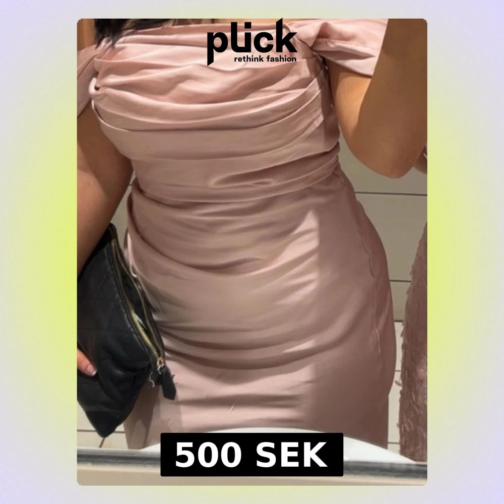 Elegant ljusrosa långklänning i glansigt material med draperad överdel och axelbandslös design. Klänningen har figurnära passform och slät kjol som faller snyggt längs kroppen. Perfekt för speciella tillfällen när du vill sticka ut. Axel band finns på men kan tas bort om det önskas. Banden är själv påsytt. Använd 2 gånger