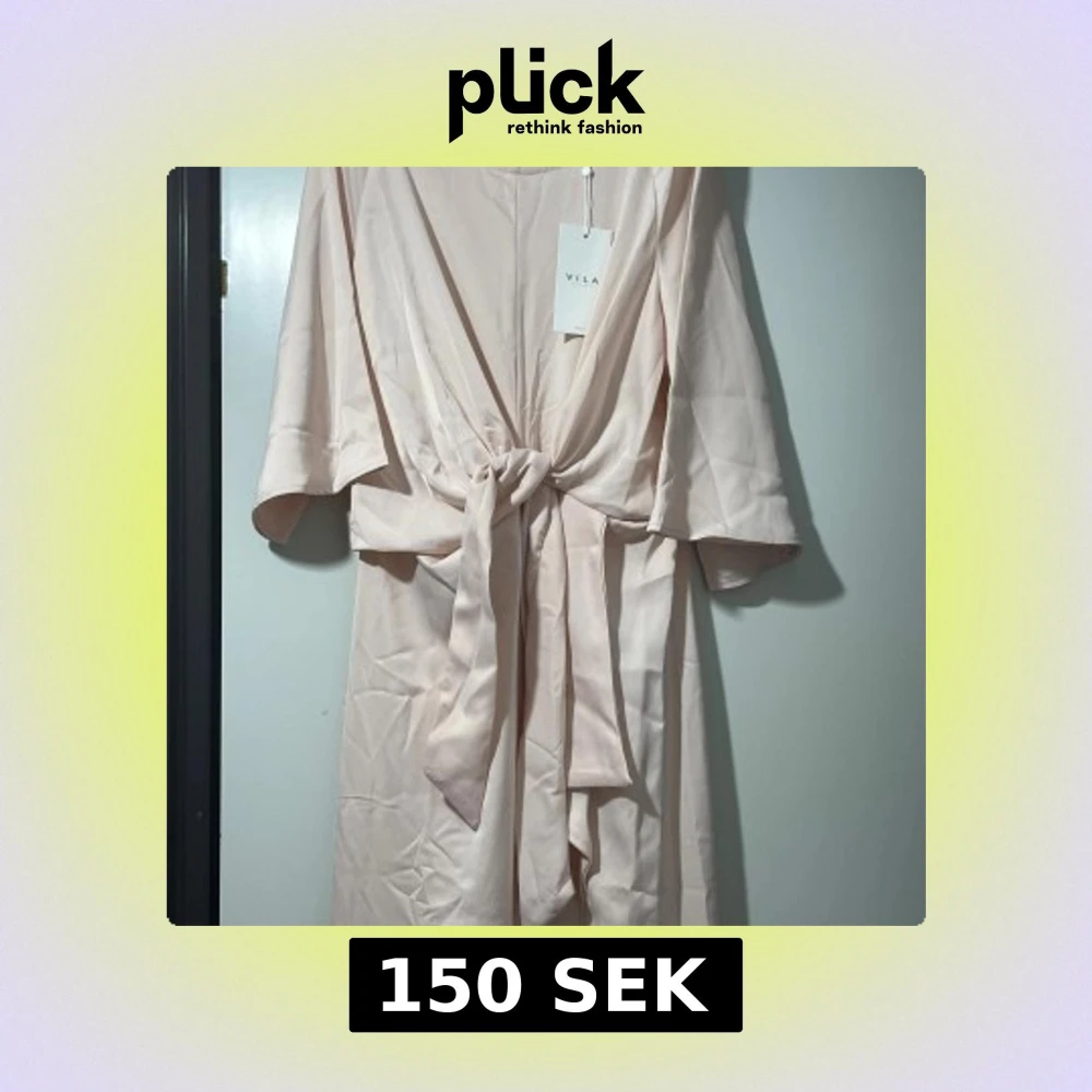 Superfin ljusrosa långklänning från Vila med knyt i midjan och vida trekvartsärmar. Klänningen har en slits framtill och är tillverkad i ett mjukt, glansigt material som ger en elegant känsla. Perfekt för dig som vill ha en stilren och chic look.