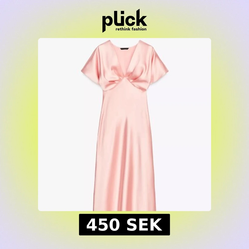 Superfin ljusrosa långklänning i glansigt satinmaterial med v-ringning och korta, vida ärmar. Klänningen är från Zara och är köpt i juni detta år. Endast använd vid 1 tillfälle💕💕