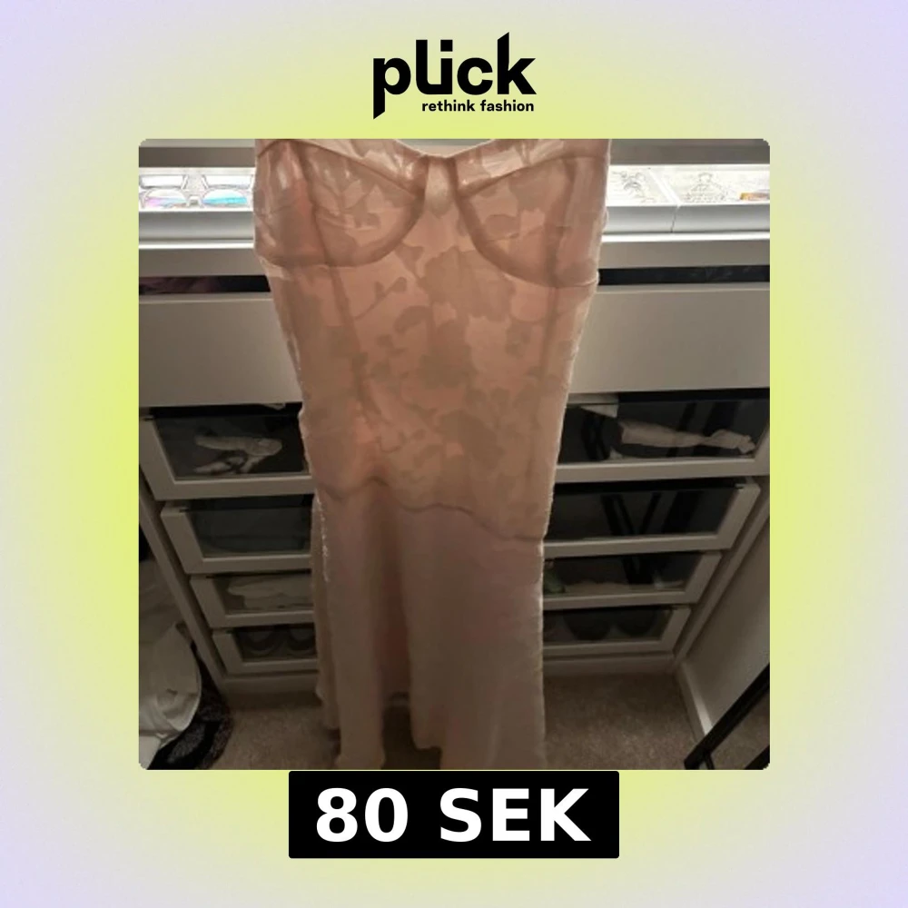 Superfin ljusrosa långklänning med subtilt blommönster och markerad byst. Klänningen har en elegant, figurnära passform och är tillverkad i ett tunt, lätt material som ger en romantisk känsla. Perfekt för dig som vill sticka ut med en feminin och stilren look.