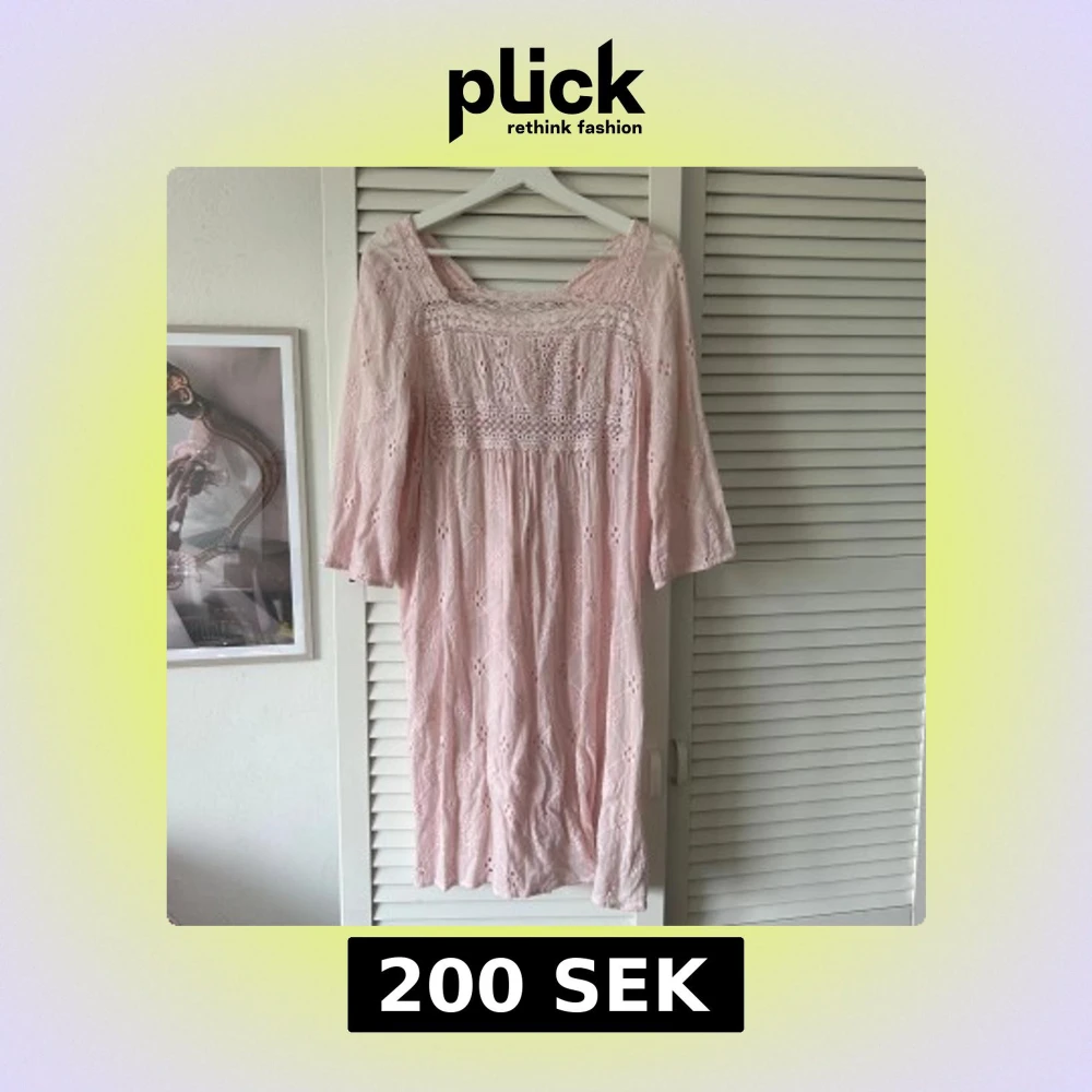 Superfin ljusrosa klänning från Odd Molly med broderade detaljer och spets upptill. Klänningen har trekvartsärm och är tillverkad i mjuk bomull. Den har storlek 3 vilket motsvarar L enligt Odd Mollys hemsida.