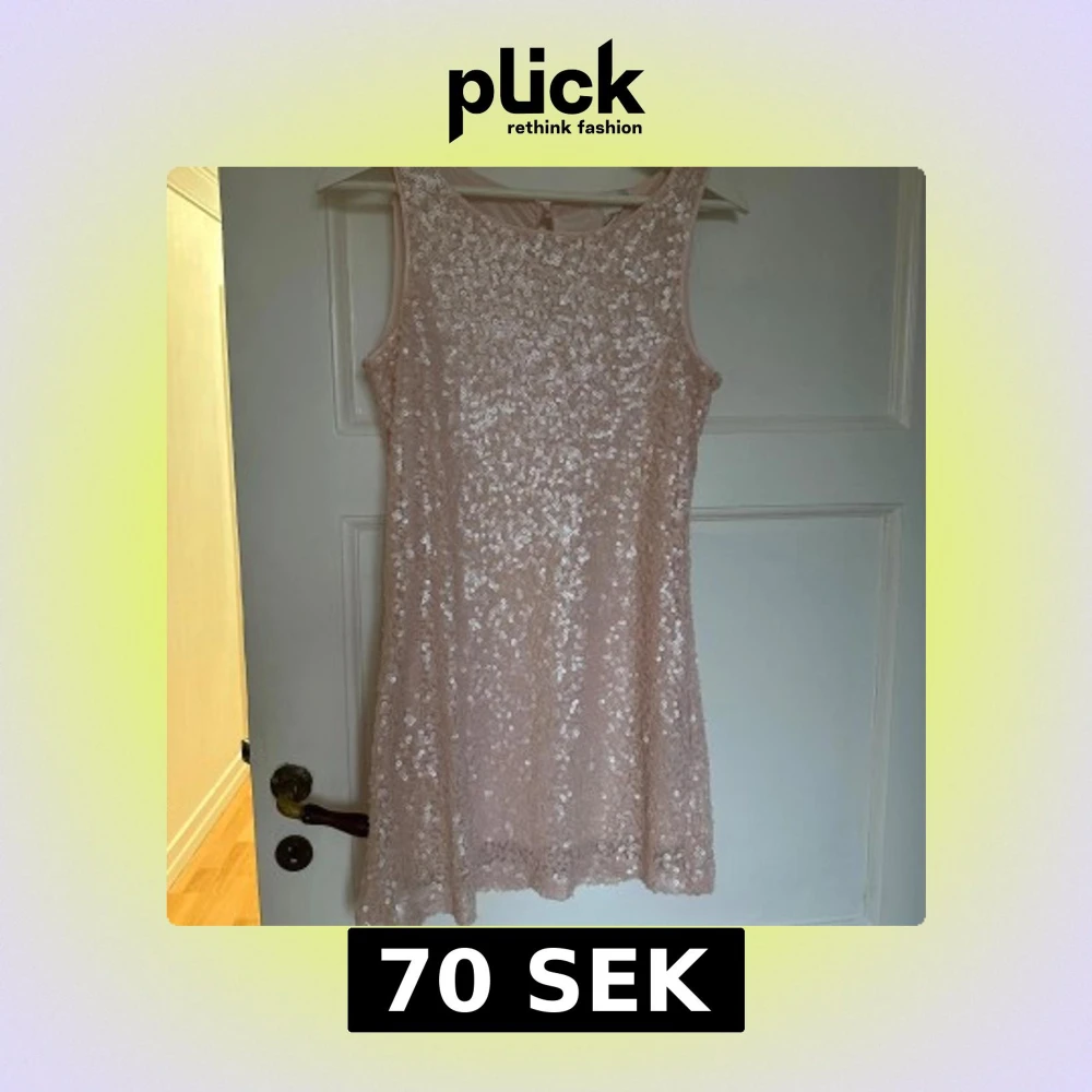 Superfin ljusrosa kort klänning från H&M, täckt med glittriga paljetter. Ärmlös modell med rund halsringning och liten öppning bak. Perfekt för dig som vill sticka ut med lite extra glitter.