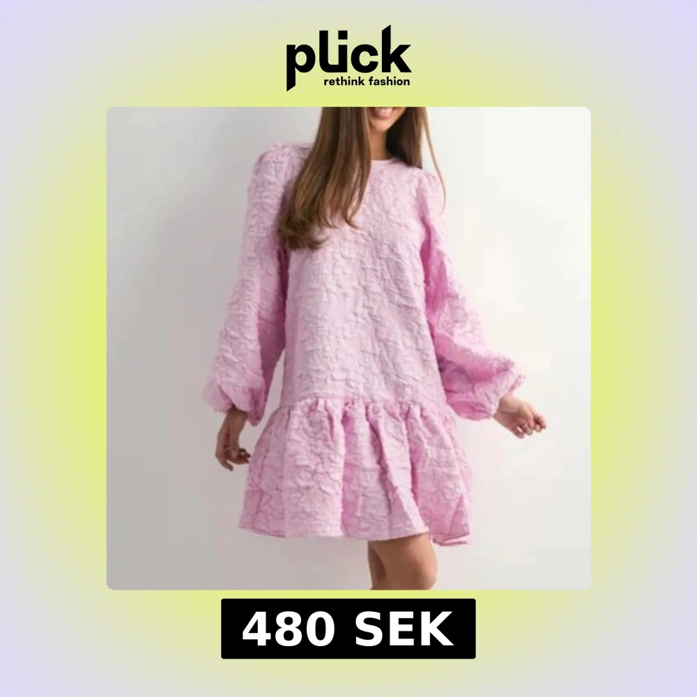Söt ljusrosa klänning med volangkant nertill och långa puffärmar. Klänningen har en öppen rygg med knytband. Perfekt sommarklänning! helt ny men råkade dra av prislappen så kunde inte lämna tillbaka den🩷