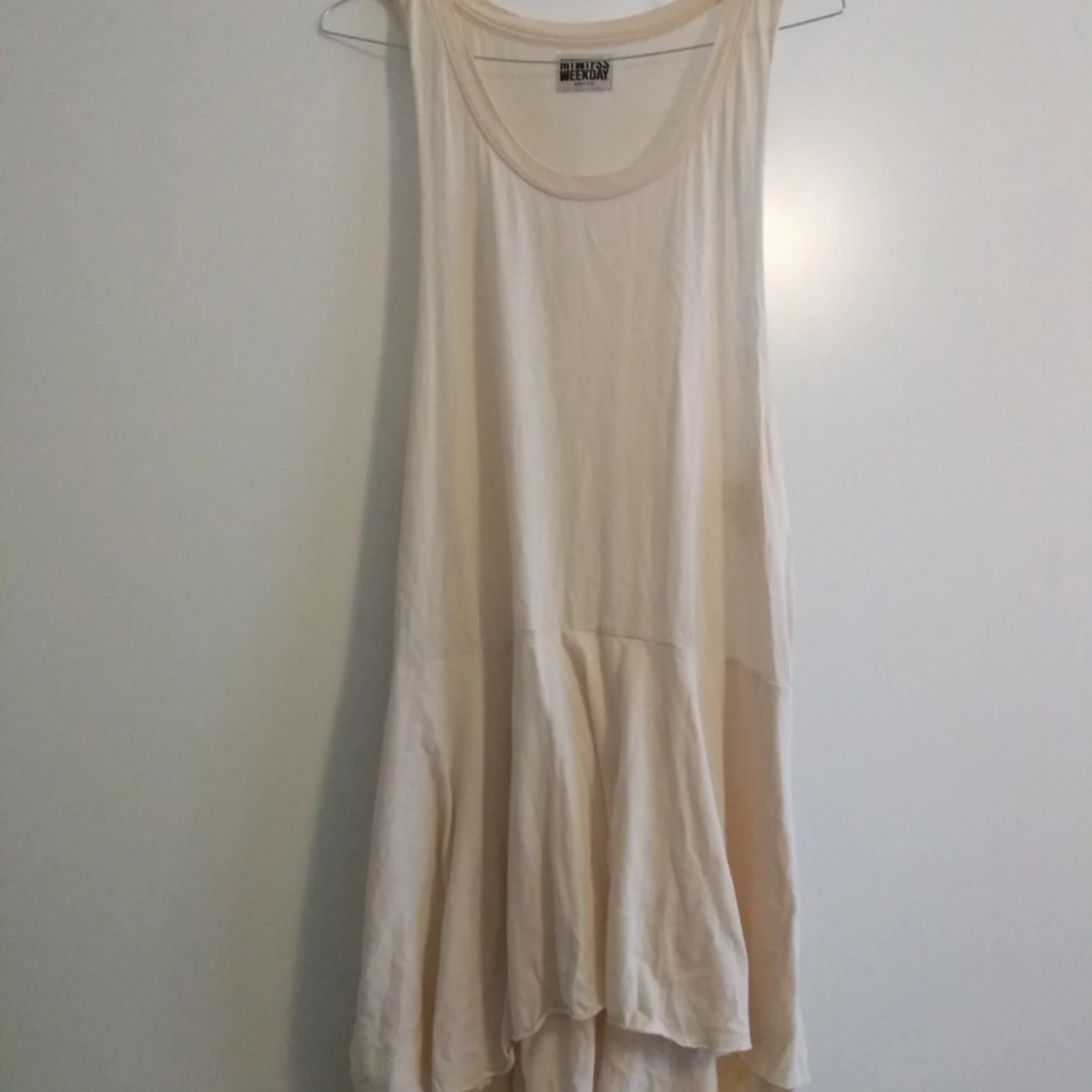 strl M, lös klänning i svagt off-white/rosa. Kan bäras av S och L tack vare den hängande passformen.