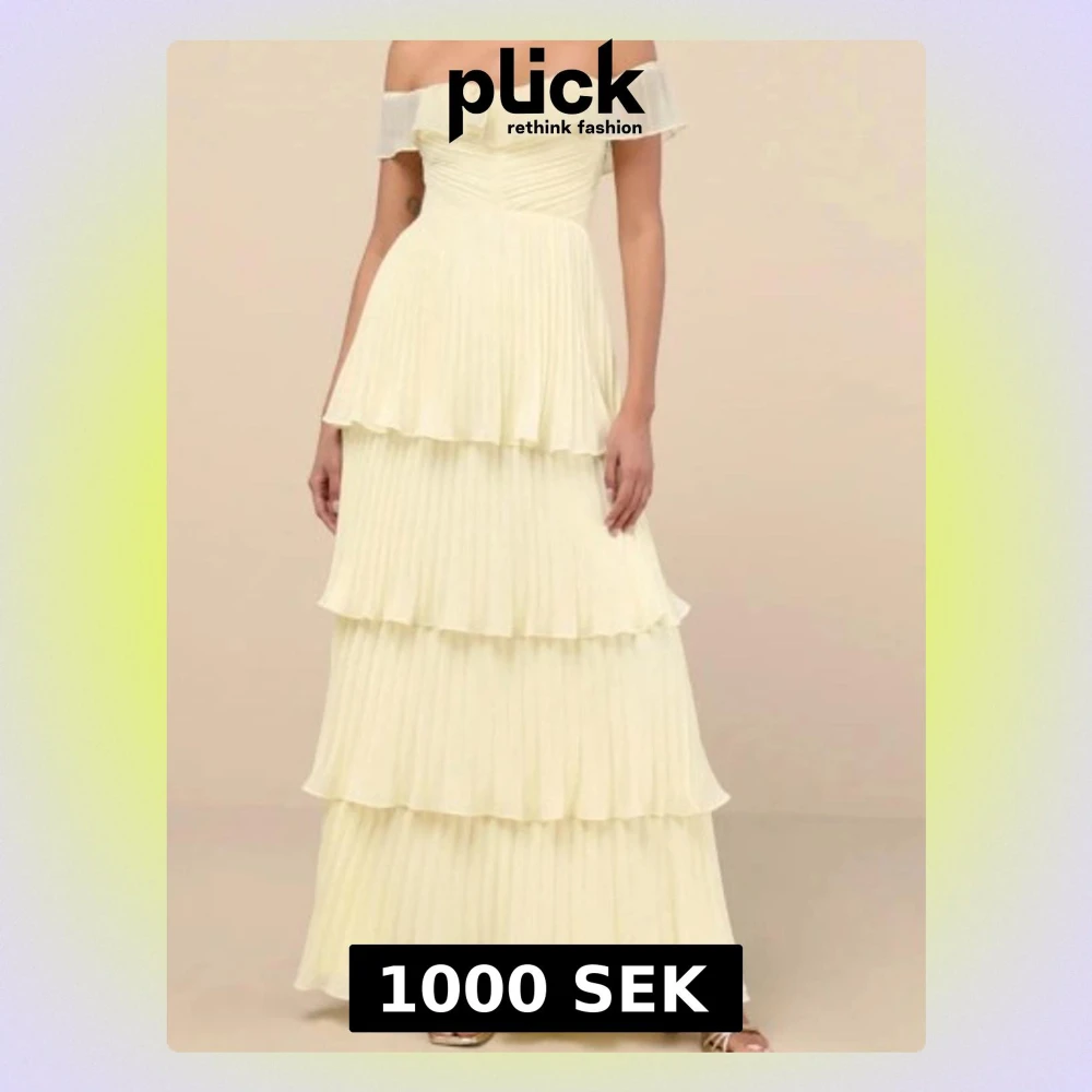 !HELT OANVĂND! Superfin ljusgul lĂ„ngklĂ€nning med offshoulder och flera lager volange, perfekt till balen. Köpt frĂ„n Lulus (nypris, 1250kr)đ sĂ€ljer pga att jag ville ha en rosa istĂ€lletđ„°