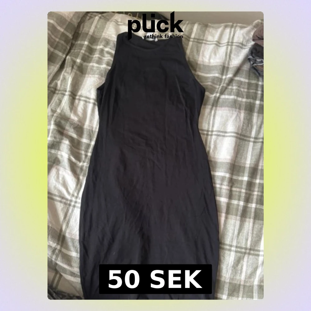 Säljer en svart, figurnära klänning från NLY Trend i storlek M. Klänningen är ärmlös med hög hals och har en enkel, stilren design. Materialet är mjuk bomull som känns skönt mot huden. Perfekt för dig som gillar minimalistisk stil.