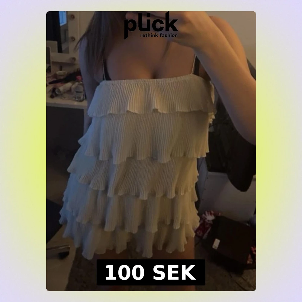 Säljer en superfin ljusgul kortklänning med flera lager volanger och tunna axelband. Aldrig använd.