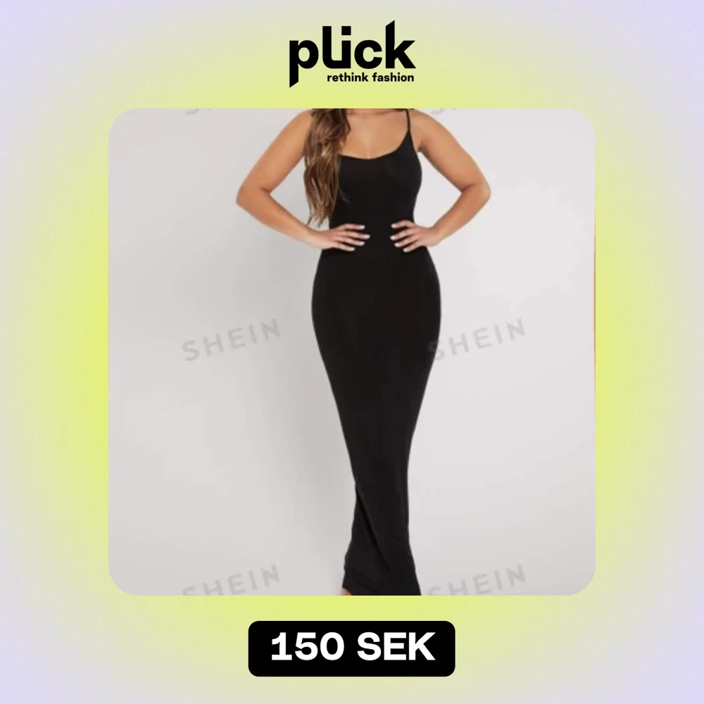 Säljer en elegant svart långklänning från SHEIN. Klänningen har smala axelband och en tight passform som framhäver figuren. Perfekt för festliga tillfällen eller en utekväll. Klänningen är tillverkad i ett mjukt och bekvämt material.