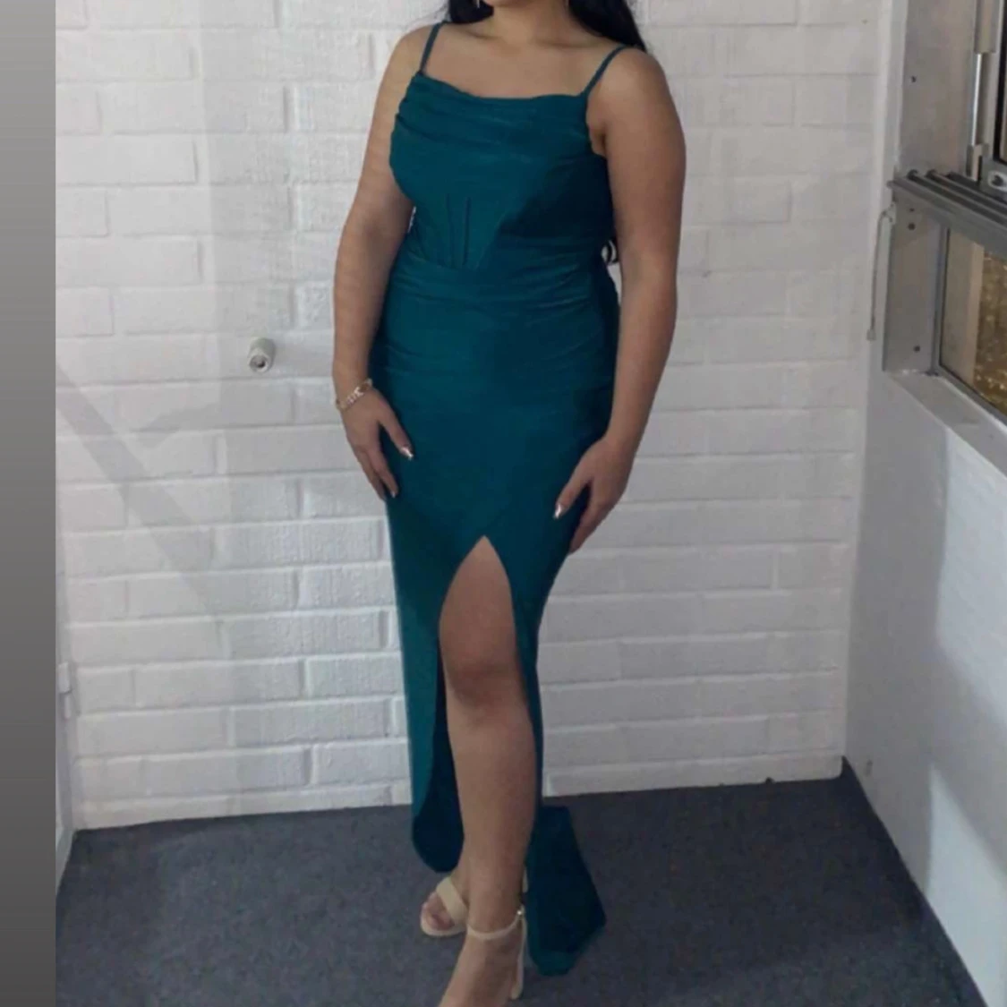 Mörkgrön långklänning med slits