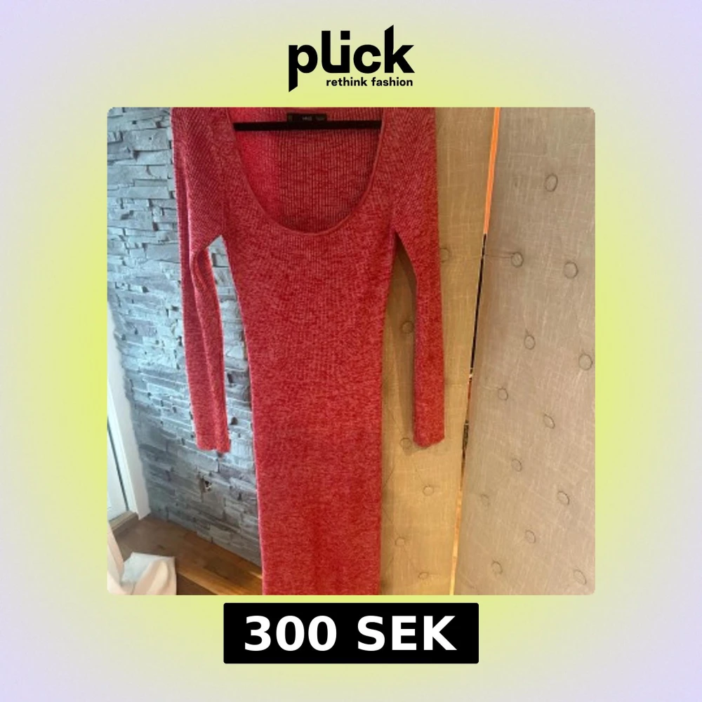 Snygg röd långklänning från MNG med ribbat mönster och lång ärm. Klänningen har en djup rundad urringning och är figurnära i modellen. Perfekt för dig som gillar en enkel men ändå iögonfallande stil.Helt ny