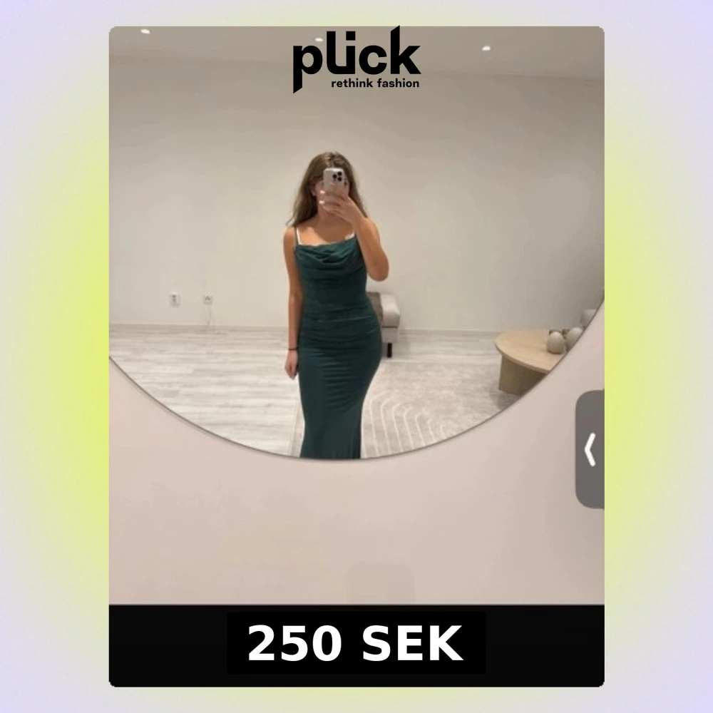 Säljer en elegant mörkgrön långklänning med smala axelband och snygg drapering vid bysten. Klänningen har figurnära passform och är perfekt för speciella tillfällen. Materialet känns mjukt och följsamt mot kroppen. Är även en inbyggd korsett skulle nog säga att det är en S/M