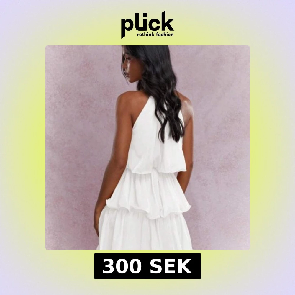 Säljer en vacker vit klänning med volanger och halterneck. Perfekt inför studenten🤩. Obs inte strykt på bilden så ännu snyggare då. Pris kan diskuteras!