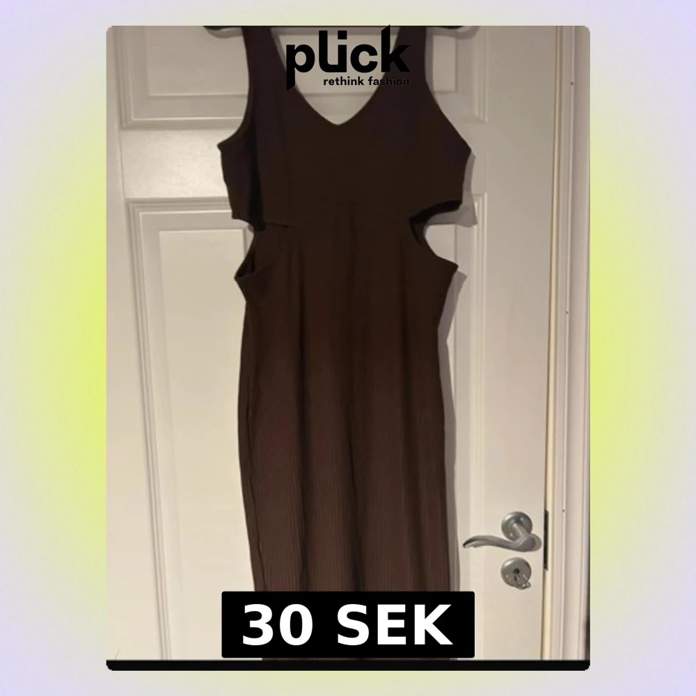 Stilren brun långklänning med ribbad struktur och snygga cut-outs som ger en modern och trendig Ärmlös modell med v-ringning Både bekväm och statement på samma gång perfekt till middag, fest eller semester ✨(ifrån h&m)