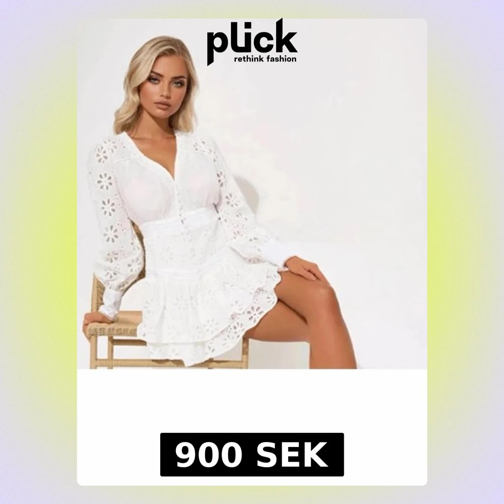 BUD PÅ 1300!!!!!❤️Superfin vit kort klänning med v-ringning, långa ärmar och broderade blommor över hela tyget. Klänningen har markerad midja, knappar framtill och volangig kjol. Perfekt för sommarens alla tillfällen! Materialet känns lätt och luftigt.