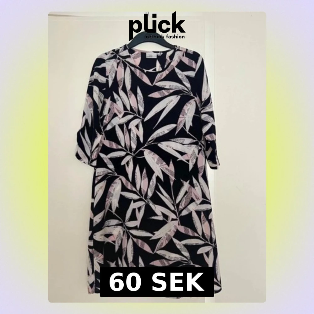 Kort klänning från Isolde i svart med ett grafiskt bladmönster i vitt och ljusrosa. Klänningen har rund halsringning och trekvartsärm. Tillverkad i ett mjukt, lätt material som ger en avslappnad och skön passform.