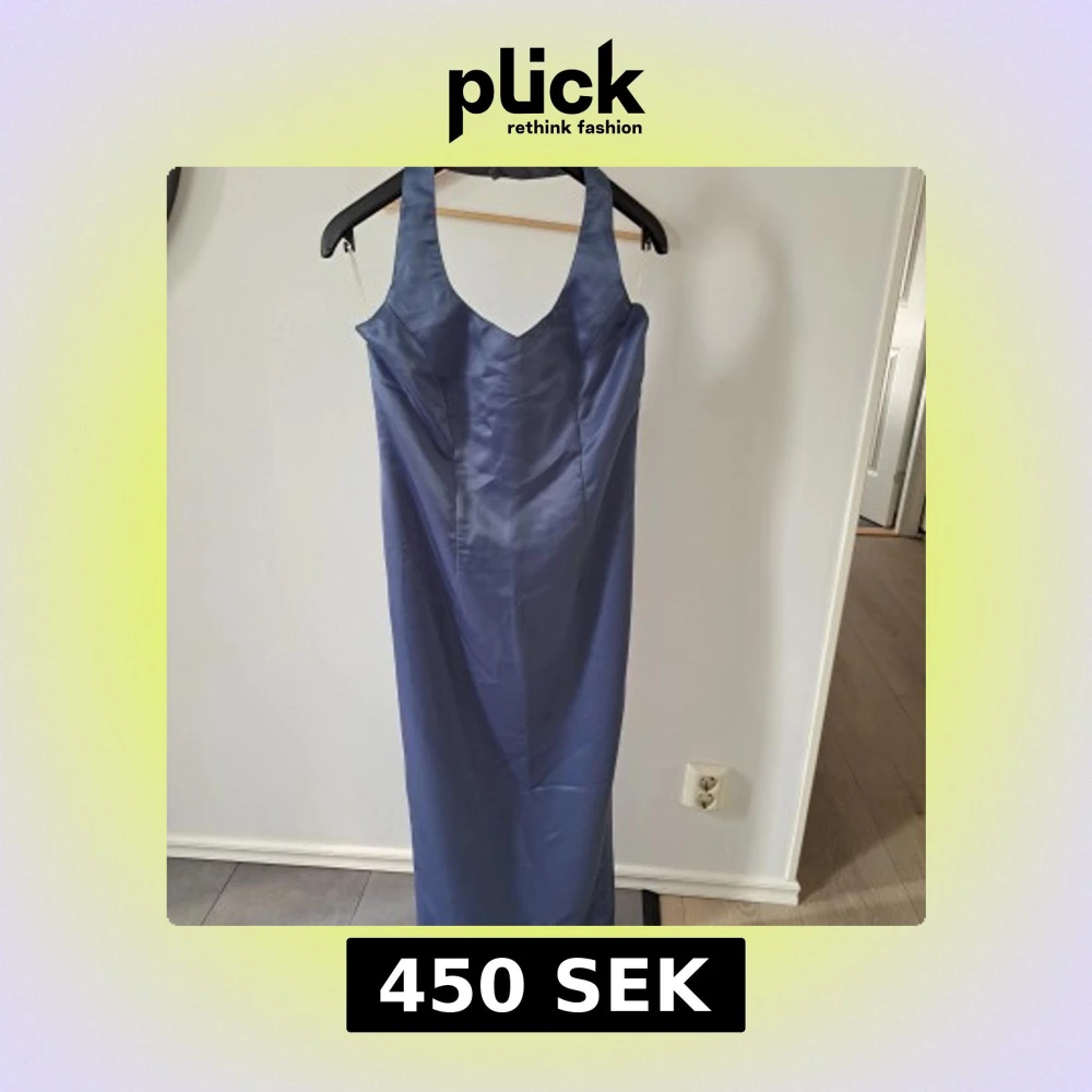 Säljer en elegant långklänning i blå satin med breda axelband och urringning. Klänningen har en figurnära passform och är perfekt för bal eller festliga tillfällen. Ryggen är haltineck. Passar till längd ca 160.