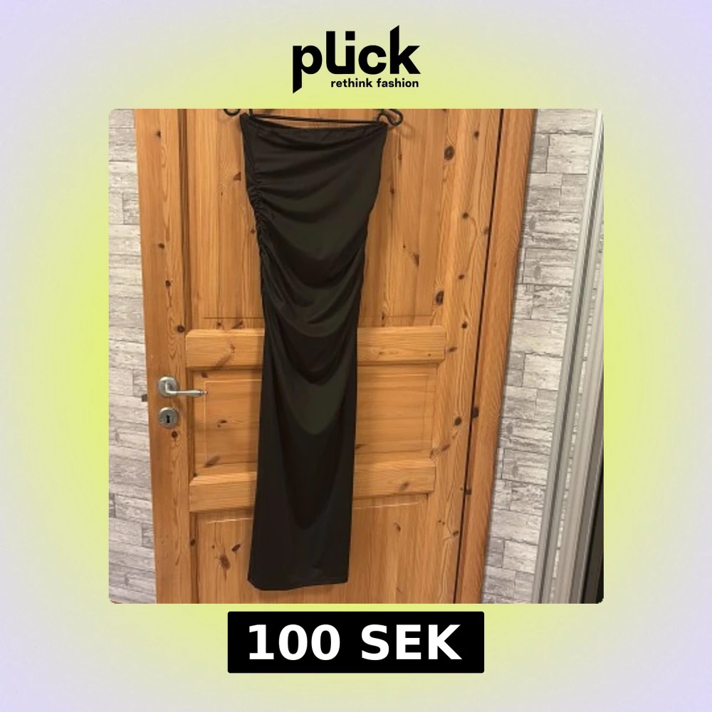 Säljer en svart, axelbandslös långklänning med tight passform. Klänningen har snygg rynkdetalj på ena sidan och är gjord i ett stretchigt, mjukt material som sitter figurnära. Perfekt för dig som vill ha en stilren och elegant look.
