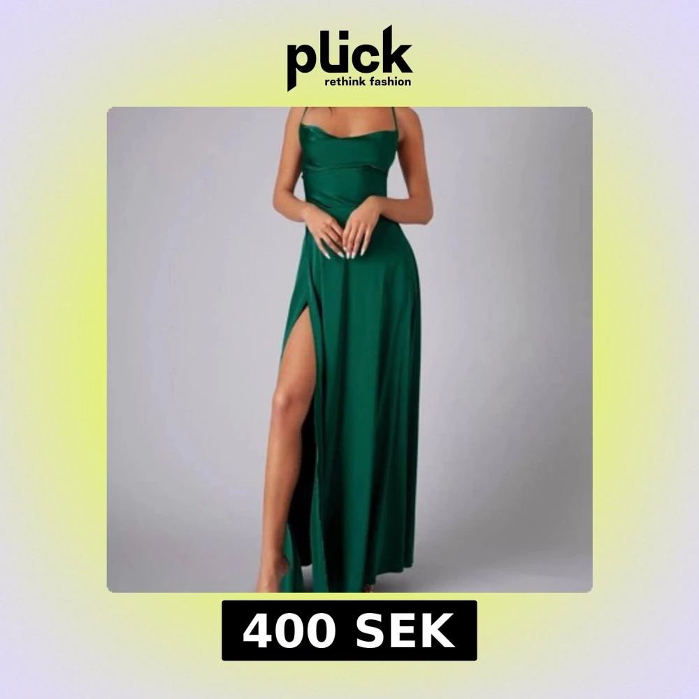Grön balklänning med slits och öppen rygg. Aldrig använd då jag använde en annan till min studentbal. Perfekt till bal, bröllom mm.