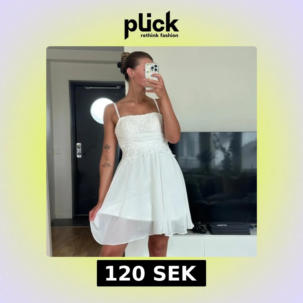 Superfin vit kortklänning från Oneness med tunna axelband, spetsdetaljer upptill och snörning i ryggen. Kjolen är lätt och flowy med ett lager av tunt tyg. Perfekt för sommarens alla tillfällen när du vill känna dig extra söt.