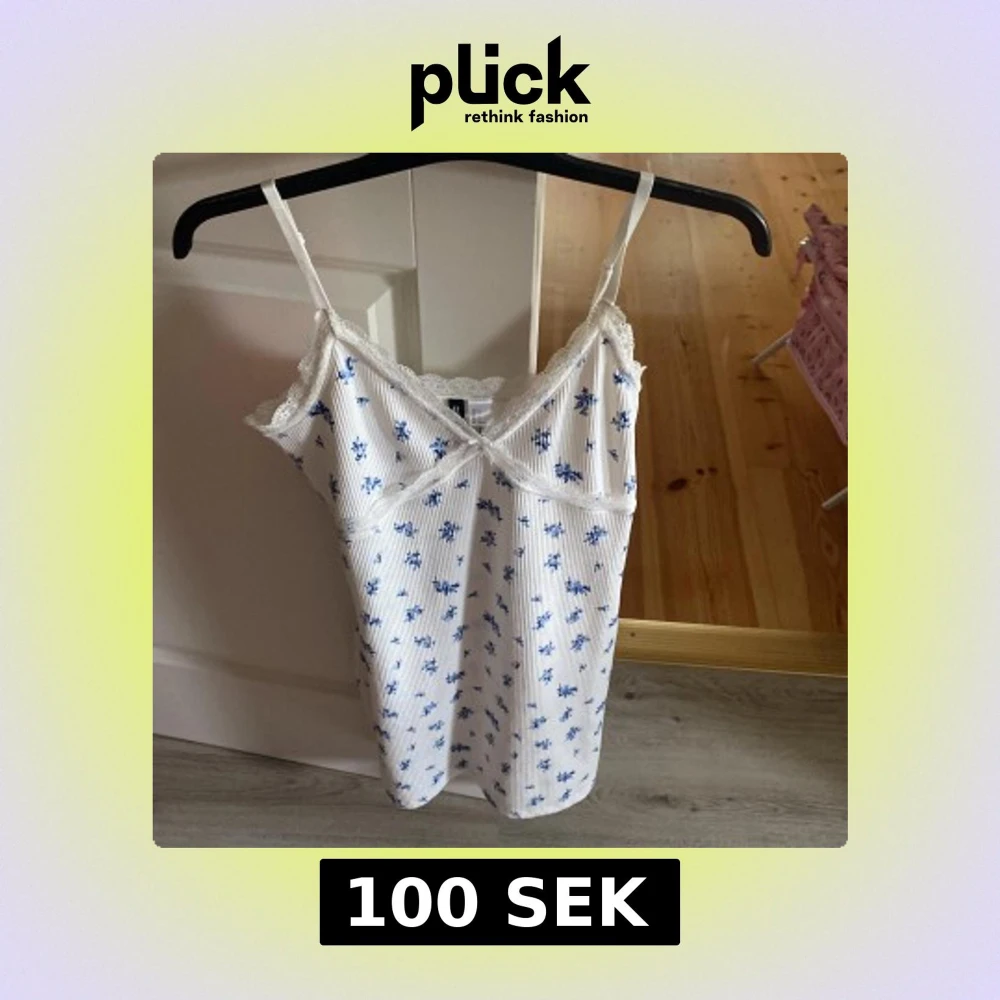 Supersöt vit linnetopp med blått blommönster från H&M Divided. Toppen har tunna axelband, spetsdetaljer längs urringningen och ribbad struktur. Perfekt för en fräsch och somrig look med romantiska vibbar. Skicket på klänningen är fin och den är bara använd en gång av mig.