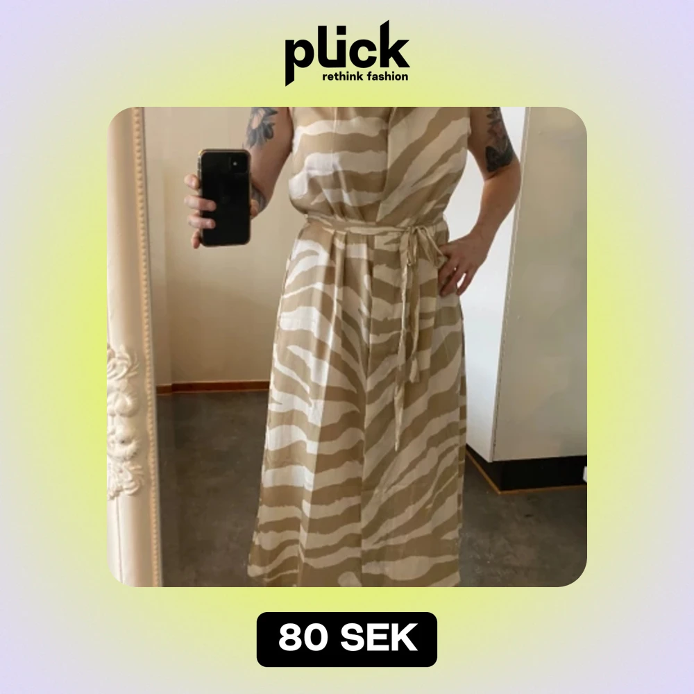 En klänning av glatt tyg. Stor i storleken med en knytning i midjan. Inga defekter.
