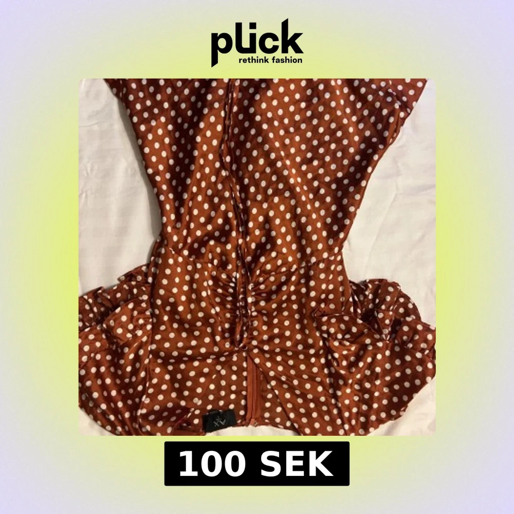Säljer en söt brun klänning med vita prickar från AX Paris. Klänningen har en dragkedja i ryggen och volangdetaljer vid fållen. Perfekt för en somrig look! 🌼