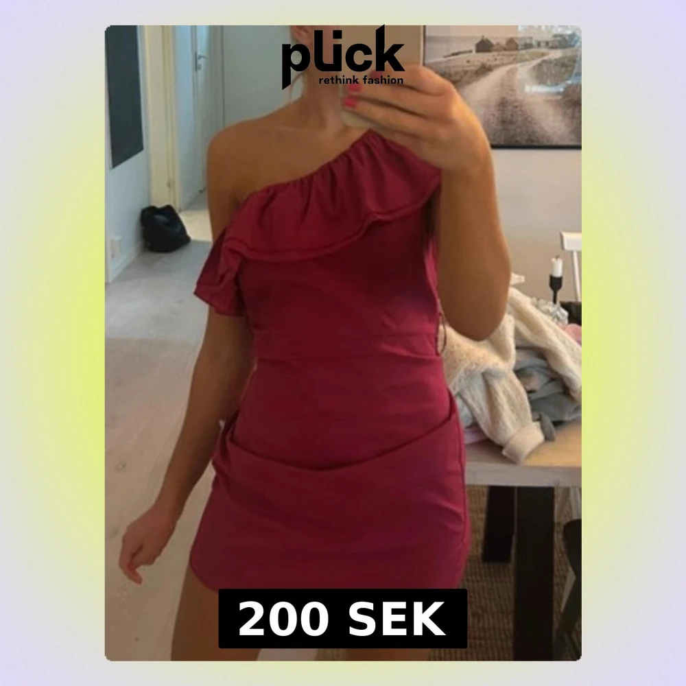 Säljer en snygg rosa kortklänning med one shoulder-design och volangdetalj över axeln. Klänningen har en tight passform och är perfekt för dig som vill sticka ut. Materialet känns mjukt och följsamt mot kroppen.