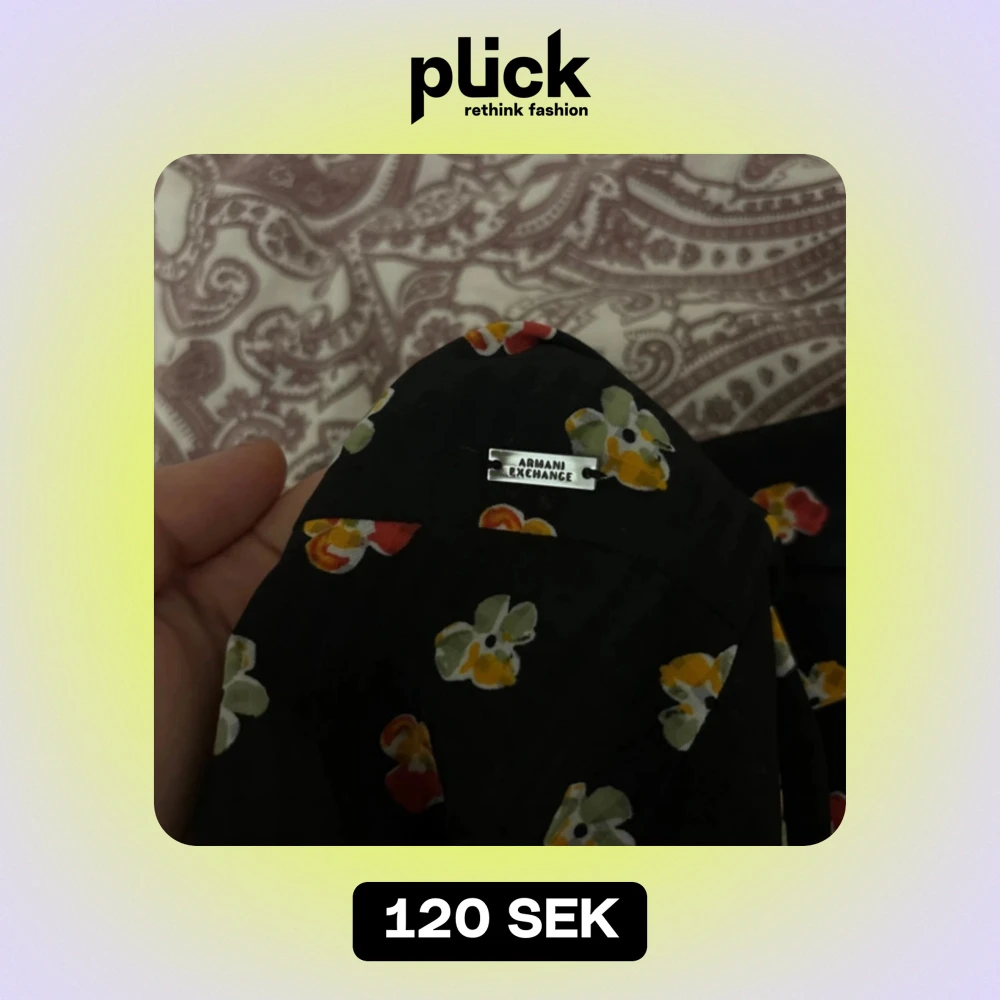 Säljer en superfin svart klänning från Armani Exchange med färgglada blommor i rött, gult och grönt. Klänningen har långa ärmar med volangdetaljer och en bekväm passform. Perfekt för både vardag och fest!