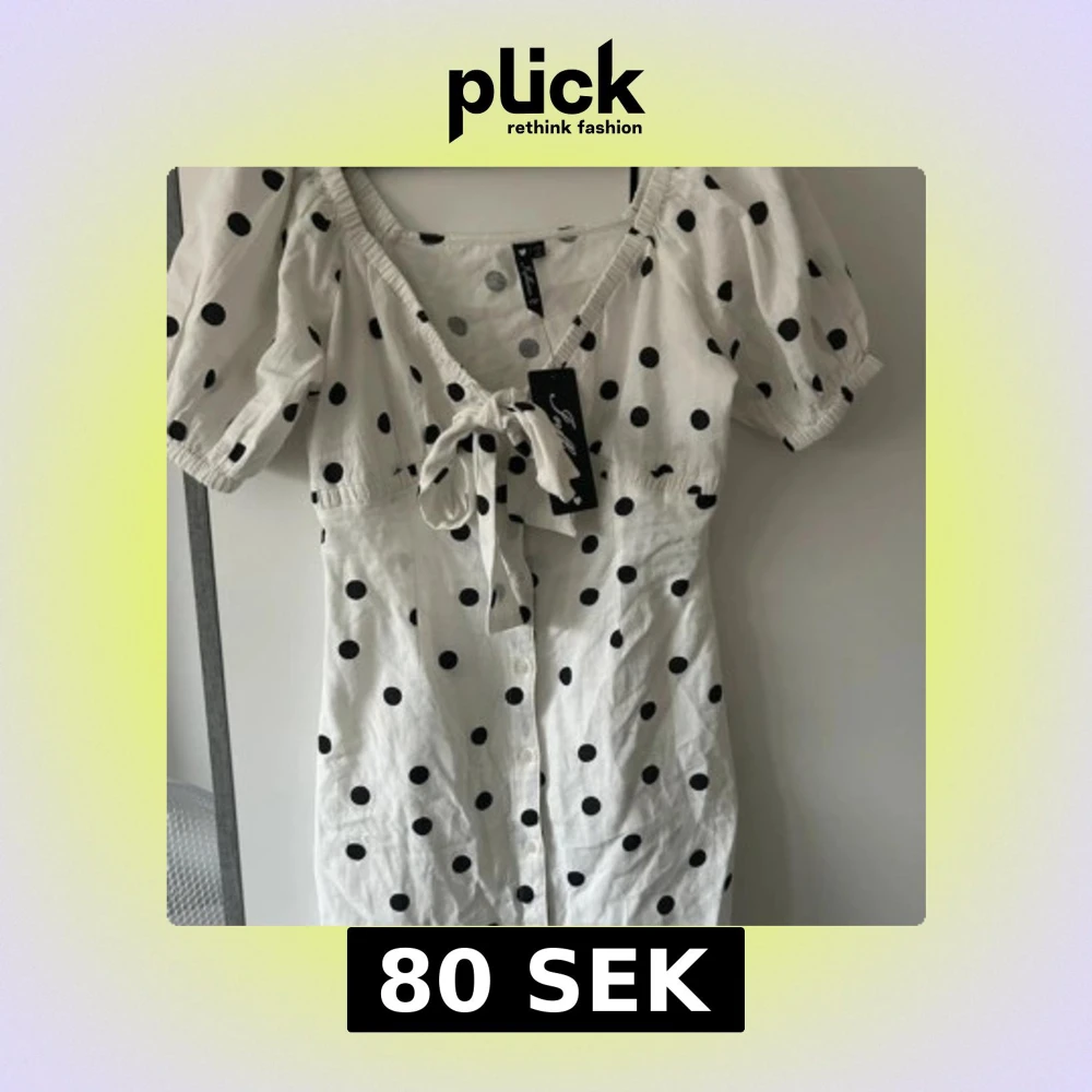 Supersöt vit kortklänning från Influence med svarta prickar, puffärmar och knyt framtill. Klänningen har knappar längs framsidan och en feminin v-ringning. Perfekt för dig som gillar lekfulla och trendiga detaljer.