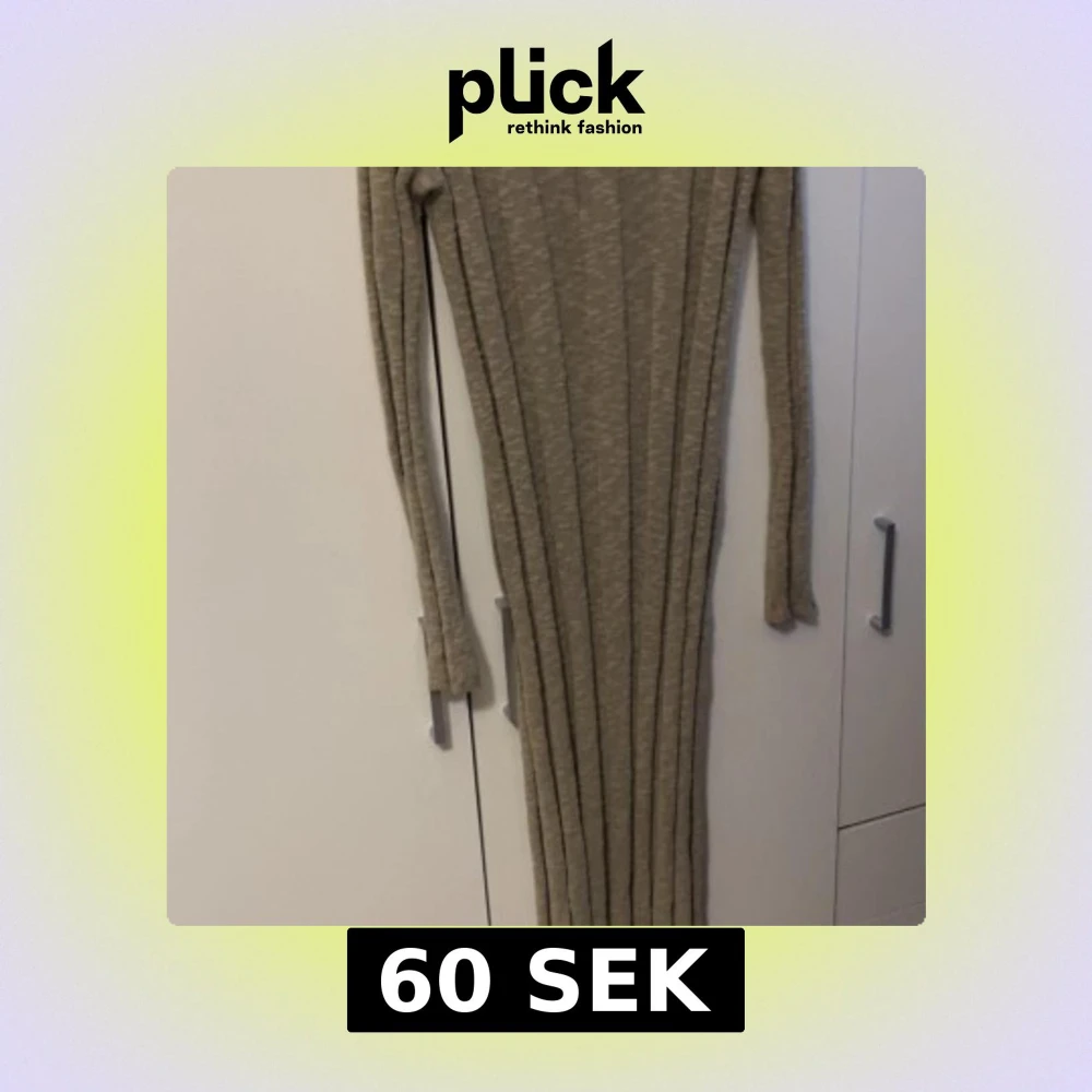 Snygg beige långklänning med ribbad struktur och långärmad design. Från NaKd