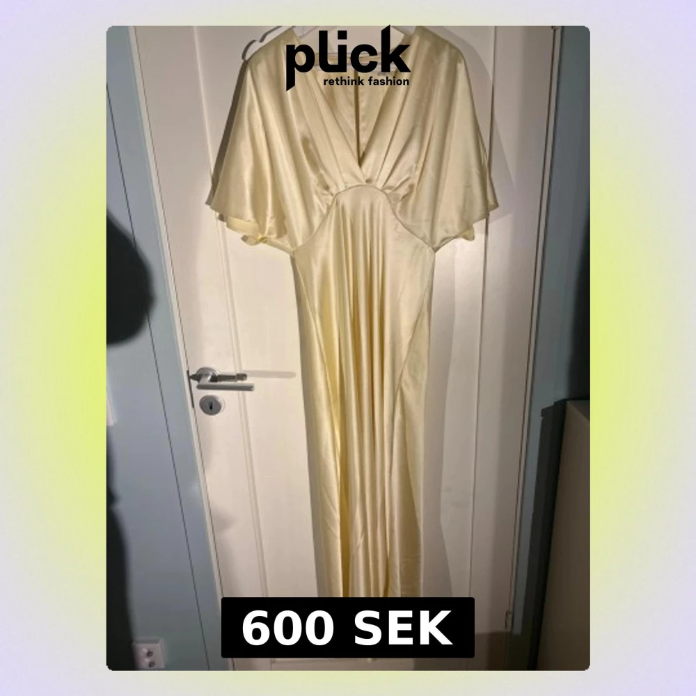 Superfin klänning i satin! Använd en gång, MEN på bilderna finns det lite småfel som är lite överallt på klänningen (inte tydligt men om man kollar noga) tidigare pris då jag köpte den var för 1 500kr.