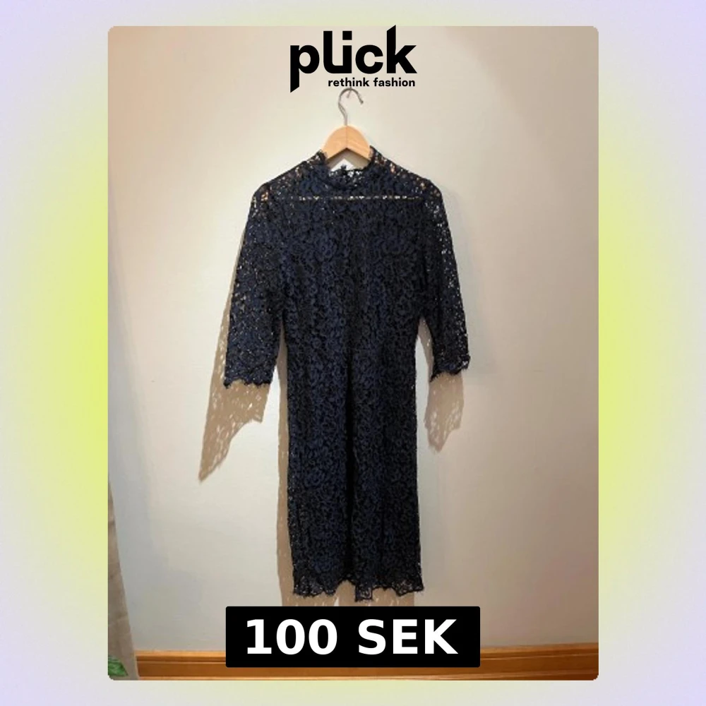 Supersnygg mörkblå spetsklänning från Soaked in Luxury med blommigt mönster, hög hals och trekvartsärm. Klänningen är fodrad och har en rak passform som slutar strax ovanför knäna. Perfekt för dig som vill sticka ut med elegans.