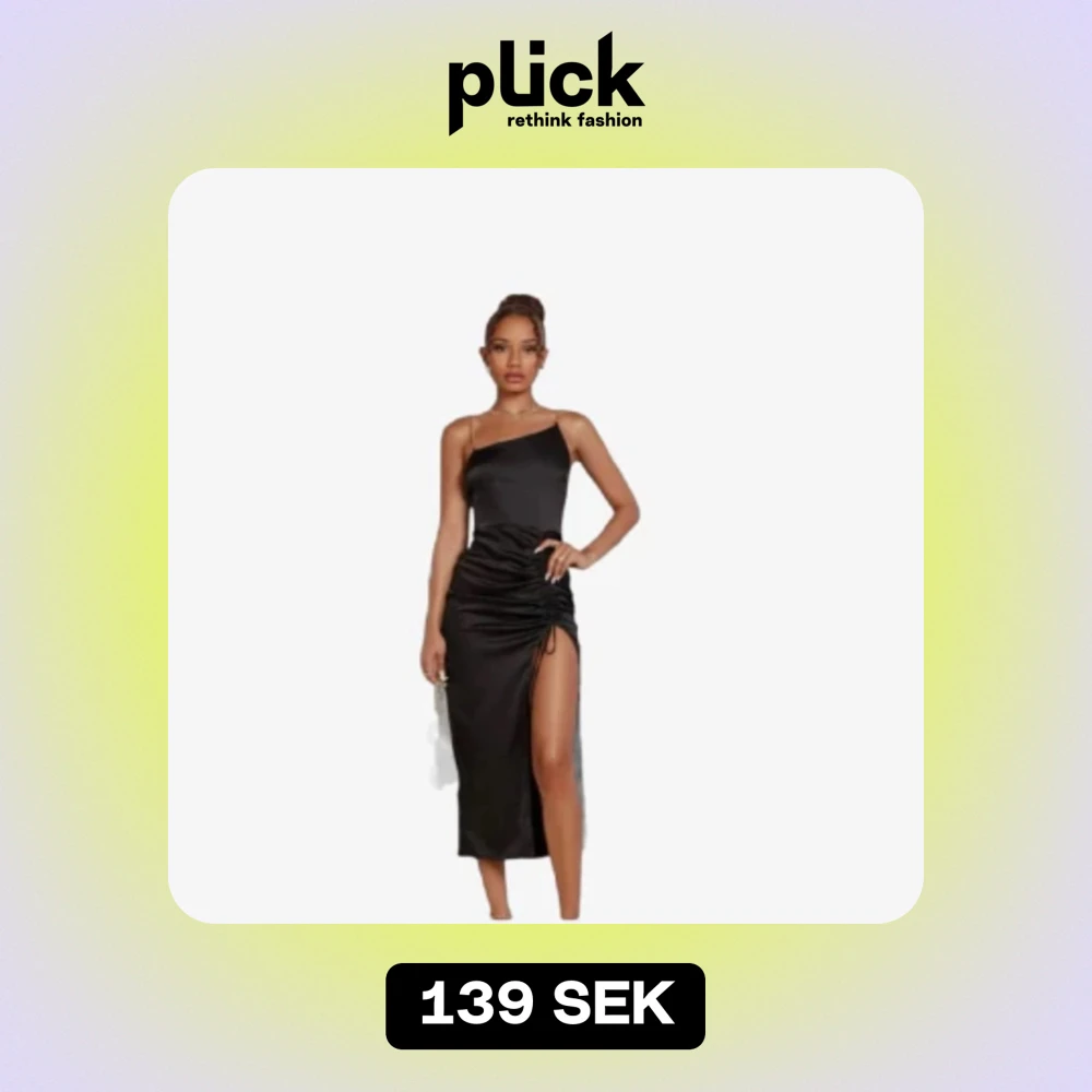 Jättefin klänning, aldrig hittat ett tillfälle att använda den. Svart satin med en guldkedja som axelband.