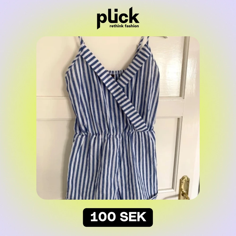 Jättefin blå- och vitrandig playsuit i linne, i bra skick🩵 I strl M men passar S.