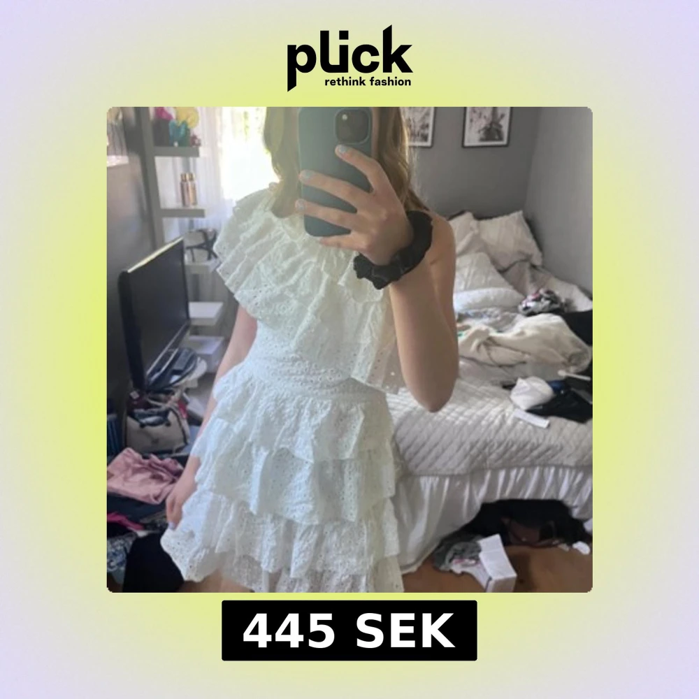 Superfin vit offshoulder klänning med volanger och broderade detaljer!!💕💕