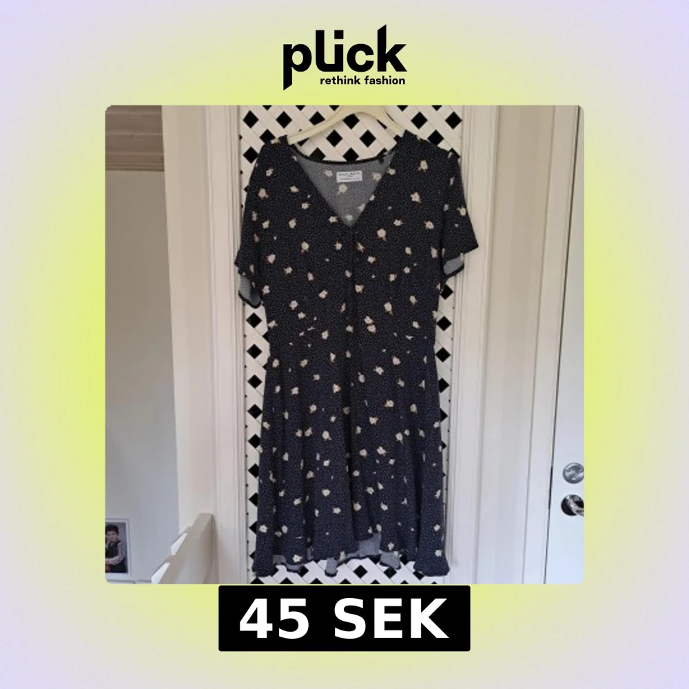 Supersöt marinblå kortklänning med vita små blommor från Holly & White. Klänningen har v-ringning, korta ärmar och ett flowy fall. Perfekt för sommarens alla tillfällen! Materialet känns lätt och svalt.