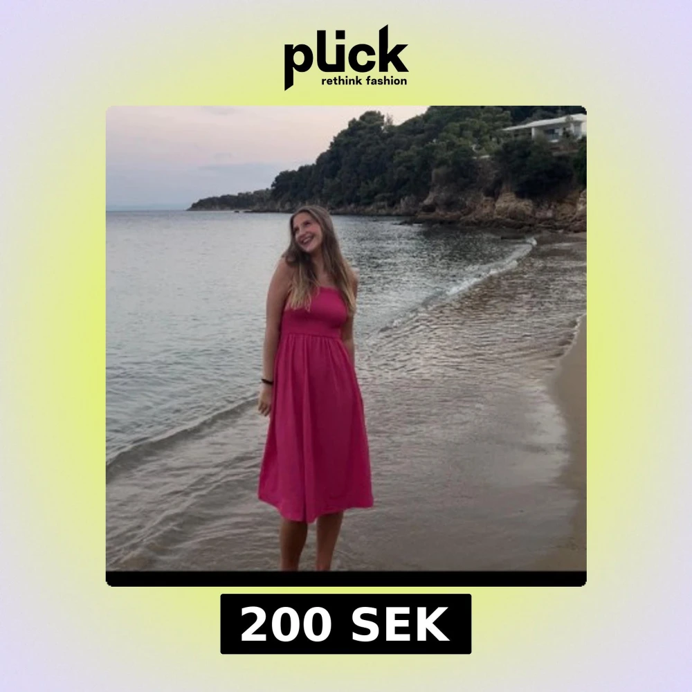 Säljer en rosa långklänning med smala axelband och smockat liv. Klänningen har en luftig passform och är perfekt för varma dagar. Den är ärmlös och har en enkel, stilren design som ger en fräsch vibe.