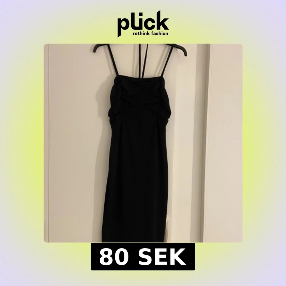 Supersnygg svart långklänning från märket WalG, köpt från Zalando. Klänningen har smala axelband, och ett band imitten. Det finns rynkade detaljer upptill. Klänningen har en slits bakom som ger en extra touch och är perfekt för dig som gillar stilrena och trendiga plagg. Matrialet är jättebra, använd en gång innan, med andra ord helt ny.